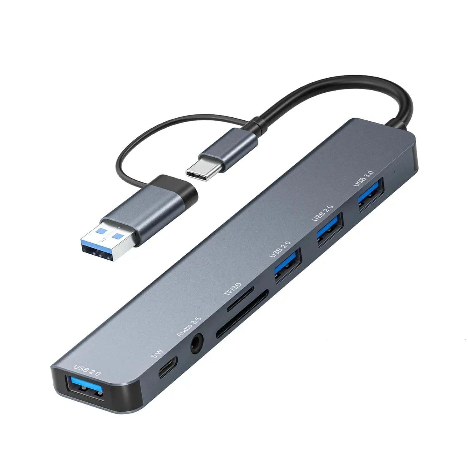 This versatile VIENON USB C Hub features a combination of USB-A and USB-C ports, providing compatibility with a wide range of devices including MacBook Pro, MacBook Air, PS4 Pro, and more. It boasts 8 ports, including 1 USB 3.0, 3 USB 2.0, 1 USB C, SD/TF card reader, and 3.5mm audio jack. With transfer speeds of up to 5Gb/s for USB 3.0 and 480bps for USB and USB-C 2.0, it allows for efficient transfer and download of various files. This hub is compatible with most devices, including PC, laptop, and phone/tablet with a Type C port. It is also suitable for a variety of applications, such as connecting peripherals, printers, and cameras. Made with an aluminum alloy shell, it is both durable and provides quick heat dissipation. The flexible and sturdy cables ensure a stable connection between devices.