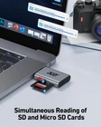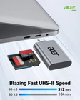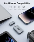 High Quality: Encased in an aluminum casing and equipped with a dust cover, the SD Card Reader USB C is wear-resistant and effectively prevents dust from entering the port. New Upgrade:When using the iPhone 15 Pro and iPhone 15 Pro Max to shoot high-definition videos with Apple ProRes, connect the device and insert an SH-II card (external storage must support at least 220MB per second). This allows you to quickly store high-definition videos directly onto your SD card. (Note: For high-definition video shooting, ensure that your camera settings are set to SDR or HDR instead of LOG to avoid blurriness.) 2-in-1 Design: The USB C SD Card Reader features a standard SD slot and a micro SD (TF) slot. Both slots can be utilized simultaneously, enabling easy synchronization and file exchange. It supports most standard memory cards such as SD, SDXC, SDHC, Micro SD (TF), Micro SDXC, and Micro SDHC. Efficient Transmission: USB C to SD Card Reader offers a transmission speed of 312MB/S.It supports UHS-II SD/Micro(4.0) & UHS-I card speed levels, facilitating smooth transfer of video and image files.The transfer speed is contingent upon the type of SD card being used Portable: The SD Card Adapter adopts a simple design, lightweight and portable. Supports USB OTG function, connects to mobile phone to share pictures and videos at any time. Its compact design makes it easy to carry with computers and cameras, making it easy to transfer files during travel. Compatibility: The Memory Card Reader is plug-and-play, requiring no installation of any plug-ins or drivers. It can be used with various devices featuring USB-C ports. It is perfectly compatible with Windows, macOS, Linux, Chrome OS, Android, iPad, MacBook Pro/Air, Laptop, Tablet, iPhone 15/15 Pro/15 Plus, Android smartphones and more.