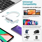 【With USB C Charging Port】This 4in1 SD/Micro SD/USB reader adapter adds a USB C charging port, charging, transmission, view photos or watching videos can be operated at the same time. So you no longer have to worry about the lack of power on your phone during transmission. 【5Gbps Fast Transfer&Instantly Sharing】 Plug&Play, built-in newest powerful chip, allows simultaneously read & write on SD cards, Micro SD cards and USB storage with up to 5Gbps fast transfer speed, transfer photos/videos in just seconds to the mobile phone, pad, laptop, or computer, help you instantly sharing memorable moments on social media anytime and anywhere. 【Super Utility Ports】SD/TF(Micro SD ) dual card slots, easy inserting and pulling, compatible with SD, SDHC, SDXC, MicroSD, MicroSDHC, MicroSDXC, for all kinds of Dash Cam/Trial Camera/Digital Camera memory cards, capacity up to128 GB. The standard USB port can works as USB adapter connect camera, USB flash drive, hard drive, keyboard, mouse, printer etc to the USB C devices. More importantly, you can share battery power with your friends via USB port and solve their urgent needs. 【Stable Bidirectional Transmission 】You can quickly transfer files from your memory cards/USB storage to the compatible Type C devices , or back up files from Type C devices to them, or transfer between 2 cards, transfer between card and U disk. 【Superior Safety Durability and Portability 】The shell of this sd card reader was made out of upgraded fireproof material, provide over-current, over-voltage, short-circuit and over-temperature protection ensure eliminate any security risk, protect your devices. The shell surface with superior wear and impact resistance, anti-fingerprint, is durable in use.Super light weight and compact size for you to carry around. 【Ultra Strong Compatibility】Compatible with all USB C devices such as for iPhone15 Pad Pro 2020/2019/2018, iMac/iMac Pro 2017, MacBook/Pro/Air 2020/ 2019/2018, Samsung Galaxy S10/S9/S8/S8 Plus / S9 Plus /Note 8/Note 9, Chromebook /Pixelbook, Surface Book 2, Asus Zenbook, Dell XPS13/15 etc.