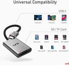 【Ultra High-Speed Transfer】Say Hi to USB-C SD/MicroSD Card Reader. This Type-C port supports USB 3.0 that can transfer stably data transfer speeds up to 5Gbps and is backward compatible with USB 2.0/1.1. Transfer photos/videos in just seconds. It'll get your transfers moving along at a healthy clip. Note: THE ACTUAL SPEED depends on your devices. 【Instant Sharing】Plug and play, the USB Type-C Card Adapter helps you share life instantly with friends anytime, anywhere. Everyone is totally able to be a YouTuber or a Tik Toker by editing your travel vlogs and uploading every one-shot stunning moment through it. And such a large card capacity, up to 2TB, that never let you worry about running out of phone memory. Simultaneously Read & Write on two cards to save effort of unplugging and re-plugging. 【Superior Durability】With optimized connector, aluminum body, durable braided nylon cable, and premium chips, this converter can withstand being used over years, supporting stable data transmission even outdoors. Does Not Recommended for SD Cards with a Lock Tab. 【Thoughtful Design】Designed with a piece of cable, this USB C memory card reader won't block the other ports of your computers. The anti-skid design prevents you from slipping off your hands easily and causing damage. Spring Loaded Mechanism, easy in and out. Plug & Play, USB-C On the Go provides convenient memory card access whenever needed. 【Wide Compatibility】This sd card adaptor with USB-C port is widely compatible with Pixel, HTC, Samsung Galaxy S21/S20+, and more Android smartphones. Also compatible with universal laptops and PCs, including MacBook Pro/Air, Mac mini, Dell XPS, Surface Book, and USB-C tablets. *NOT SUPPORT iPad with lightning port. Dual card slots support SD, SDHC, SDXC, MicroSD, MicroSDHC, and MicroSDXC cards. Does Not Recommended for SD Cards with a Lock Tab. 【What You Get】USB C SD/MicroSD Card Reader, and welcome guide are ready. And we provide 24/7 customer service and an effortless 18-month 𝗐𝖺𝗋𝗋𝖺𝗇𝗍𝗒. Please rest assured we stand behind our products and customers. DON'T NEED TO WORRY EVEN IF THE AMZ 30-DAY RETURN WINDOW IS CLOSED.