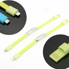 Description Type: Charging Data Sync Cable Color:Rose,Red,Grey,White,Blue,Black Functions: charging and sync data transmission Unique design and flat noodle style. Ideal for people that always need a cable on the go without the messy wires The two ends of this data cable can clasp to form a rope, which is like bracelet. colors: Total Length:21cm Bracelet Length:19CM Package includes:1 x Wristband USB Data Cable Product type: Data Cables