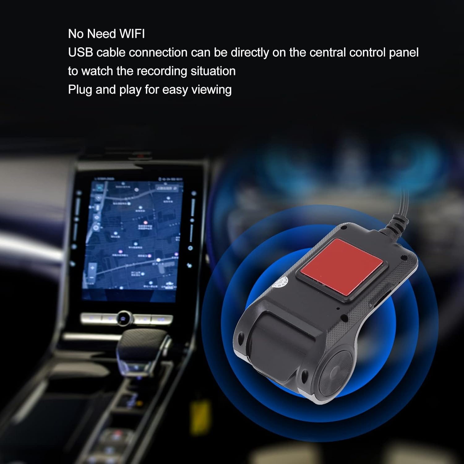 [ AND MOTION DETECTION] Car dash camera with a large aperture lens and high light sensitive chip, even at night in the low light environment, can also shoot clear image. In standby mode, it will automatically record the moving target objects. [ADAS DRIVING ASSISTANCE FUNCTION] The car driving recorder uses dynamic video camera technology to align the lane driving line when driving, to achieve lane warning and voice alert function of the front car collision. [LOOP RECORDING] This car video camera supports 8 to 32G memory card (not included), loop recording video, no frame loss, no missing seconds, the memory card can be automatically overwritten when full, thus saving the newly recorded video. [ DRIVING] Car dash cam default open voice broadcast function, real time reminder of various conditions, no need to look at the screen at all times. Built in electronic speed measurement, recognition of road snapshot section for safer driving. [MOBILE APP CONTROL] Car dash camera supports car and mobile Internet, APP connection, mobile APP intelligent control, support for and for iOS system cell phone, watch or download recorded video anytime, anywhere. Product Description When driving, timely warning is safer. Dynamic video camera technology is used to align the lane line when driving, reduce rear-end collision and other accidents, and realize lane deviation warning and voice warning function of front vehicle collision. Pre-warn potential hazards and prevent them before they occur. When driving, the traffic lights remind you in time, and the built-in fixed speed measurement electronic dog can accurately identify the road speed measurement and capture the location. The latest data allows you to drive more freely, refuse the ticket, and travel safely. Compatible with the Android version of the central control screen, without WIFI, you can watch the recording on the central control screen through USB cable connection, plug and play, easy to watch. Watch or download recorded videos anytime, anywhere. Support 8~32G memory card, automatically record video in a cycle without losing frames or seconds. When the memory card is full, it can be automatically overwritten to save the newly recorded video. Low light sensitivity and wide color gamut and high dynamic mode support the generation of high-quality full-resolution video, which can still show the effect close to the scene even in strong light and darkness. Large aperture lens and high sensitivity chip are used to solve the problem of unclear night video. Even in the low-light environment at night, good visual effects can be obtained.