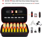 Case Only! (USB Flash Drives are not included).This usb case is compatible with: SanDisk Cruzer/SanDisk Ultra/Samsung FIT/Netac/PNY Turbo/Micro Center/Kingston/Enfain /TOPESEL/SamData/YubiKey/ INLAND 64GB 16GB 128GB 256GB 32GB and more flash drives, USB Thumb Flash Pen Drive, Memory Stick, Data Storage Jump Drives, memory cards, ssd card, license dongles. This usb flash drive case keeps your bulk flash drives well organized. External dimension(L*W*H):8.65*5.25*3.15inch, this flash drive case usb storage case holds up to 48 USB flash drives, including 21 big slots for normal size thumb drives, and 27 small slots for slim USB pen drives, this sd card case also come with 7 elastic pockets for your memory cards, memory chips micro usb cards, SD SDXC SDHC Cards, Meet all your storage needs. lightweight travel pouch, the usb drive case is easy to carry with your backpack. High Quality thumb drive case, the memory card case is made of superior PU leather and premium EVA material which is waterproof shockproof and scratch-resistant, keeps your usb storage flash drives away from damage. this usb flash drive storage case is easy to carry, compact and handy travel flash drive holder for your usb flash drives. Unique Design: This flash drive holder has a foam insert with precise precut slots, holds the USB drives tightly, helps to prevent the USB jump drives falling out, you can also remove the foam cutouts and store your other memory cards and electronic accessories. Fluffy fabric lining, Double zipper design provides easy access to insert and remove your USB pen drives. This USB holder case has a strong hand strap with carabiner clip, the usb case organizer is convenient to carry for travel, suitable for school students, libraries book storing, government department, health sectors, photographer and many other fields, keeps all thumb drives in one case, no more losing data, improve your work efficiency and save your time.
