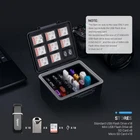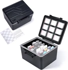 [Capacity]: It can holds up to 18 x standard USB flash drives with size within 0.8x0.5x2.5", 8 x mini USB flash drives with size within 0.55x0.3x2.5", 9 x SD/SDHC/SDXC cards and 18 x Micro SD/Micro SDHC/Micro SDXC cards. (Note* case only, the flash drives and memory cards are not included.) [Protection]: The external is made of durable ABS, protect the USB flash drives/memory cards from dust, moisture & water-splashing. The EVA interior of the lid is designed with precise cutting card slots for keeping 9 x SD cards and 18 x Micro SD cards organized. Inside it consists of molded sponge where flash drives can be safely kept in specific compartments and reduce shock. [Snap Closure]: Moreover the USB flash drive case has a solid snap closure and features a silicone sealing ring that keeps your flash drives and memory cards securely. [Ideal Organizer]: Write down the flash drive/memory card information on the notepaper, then paste the corresponding number sticker on the flash drive/memory card and put the numbered flash drive/memory card in the slot. Easy to stay organized and allow for finding the flash drive/memory card effortlessly as needed. [What You Get]: USB Flash Drive Case x 1, Notepaper x 1 and Number Sticker x 2. Case Size 4.8x4.3x3.0”. Product Description Custom Card Slots The EVA interior of the lid is designed with precise cutting card slots for keeping 9 x SD cards and 18 x Micro SD cards organized. Molded Sponge Interior The flash drives can be safely kept in specific compartments and reduce shock. Snap Closure Easy to open and close with the solid snap closure. Well Organization The flash drive case comes with number stickers and notepaper for finding the flash drive/memory card effortlessly as needed.