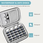 USB Flash Drive Storage Case, Case Fit 3 Sizes USB Thumb Drive, Hard USB Holder Case for Sandisk/SamData/Samsung/Vansuny/PNY, Electronic Accessories Storage Bag for SD Card, Cable Product Details Product Dimensions: 7.28 x 5.2 x 1.77 inches Item Weight: 5 ounces Special features: Waterproof Form Factor: Case Whats in the box: case for USB disk Manufacturer: Stukcaze 3 SIZES SPACE--USB flash drive storage case provide 4 large, 20 medium and 7 small space for a variety of models and brands flash drive, such as Sandisk, SamData, Samsung, Vansuny, PNY and more. LARGE CAPACITY--USB flash drive case can tidy your space, the case design bottom and top storage. Bottom store USB thumb drives, and the top store your SD cards, cables, card readers, TF cards and more. HARD EVA SHELL--EVA material protects the USB disk in the case from external damage, anti-fall and anti-pressure, and does not need to worry about being crushed in the suitcase or backpack, which is convenient for travel. JERSEY SKIN--The polyester outer fabric is waterproof, and the black color is dirt and scratch resistant, whether outdoor or indoor protect your USB flash driver to avoid water oil erosion. FIX POSITION--Built-in removable sponge frame, fixed the USB thumb drives position , prevent them from bumping when moving the case, reduce damage, provide all-round protection. You can also remove the sponge frame when need to store more USB flash drives than the space reserved by the sponge frame.