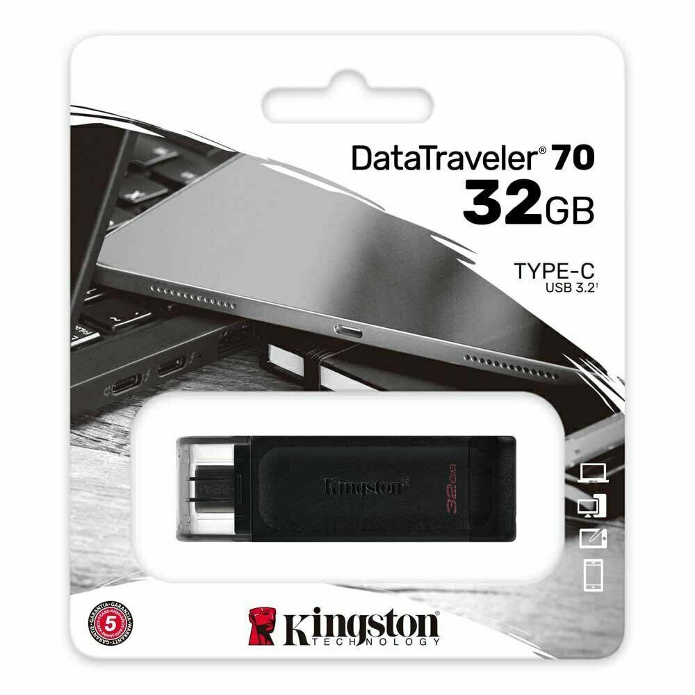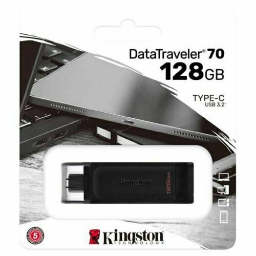 USB Flash Drive Type C Memory Stick Pen Photostick Android/Samsung / PC/Mac This product fact sheet was originally drawn up in English. Please refer to an automatic translation of the same into Italian below. If you have any questions, please contact us. 100% Genuine Kingston 32GB or 64GB or 128GB Data Traveller 70 USB Type C Removable Hooded Flash Drive in Original Retail Box Kingston Latest model in retail box. Free Royal Mail Delivery Shipping from a UK seller High speed USB 2.0/3.0/3.1 to 3.2 support Warranty -Kingston cards are covered by a 5 year manufacturer's warranty with Kingston. Some devices that use USB Type-C ports are the Nintendo Switch line, MacBook Pro, and Samsung Galaxy Phone. There are many other devices that support USB Type-C. The Kingston Data Traveller 70 (DT70) USB-C Flash Drive complies with USB 3.2/3.1/3.0/2.0 specifications to take advantage of the technology of all notebooks, desktop PCs, and digital devices with a USB Type-C Door. The DT70 makes storing and transferring documents, presentations, music, videos, photos, and more easier than ever. The DT70 features a sleek and cost-effective design to make adding to the USB-C 3.0 experience a minimal investment. Available with 32GB or 64GB or 128GB, DT70 capacities is backwards compatible with USB-C 3.1/3.0/2.0 and has a five year warranty. Features: Stylish removable hood design black on black USB 3.2 Gen 1 (USB 3.1, 3.0, 2.0) 100 MB/sec read Higher write speed, up to 10 times faster than USB 2 Specifications : Capacity: 32GB, 64GB, 128GB Speed: 100 MB/s read Warranty : 5 year warranty with free technical support Compatible with: Windows® 10, WindowsWindows 8, Mac OS (v. 10.12.x+), Linux (v. 2.6.x+), Chrome OS USB 3.2 Gen 1 performance requires a host device with a USB-C 3.0/3.1/3.2 port. It is compatible with USB 2.0 but would offer reduced speed. Speed may vary depending on the hardware, software, and usage of the host. Recommendations: Properly store Flash cards in their plastic cases and close the cap on Data Traveller drives. Do not force Flash storage devices into connectors. Pack Flash storage devices in carry-on luggage if possible. Make sure your device is compatible and has a USB TYPE C port. Any device mentioned by us in this listing is just a suggestion. We cannot recommend you on your specific model as Compatibility can change based on security patches, firmware update, etc. Occasionally Royal Mail may take little longer than the estimated time shown by eBay. Please allow up to 7 business days for Real Post to deliver the product. We provide VAT invoices upon request. The Kingston Data Traveller 70 (DT70) USB-C Flash Drive complies with USB 3.2/3.1/3.0/2.0 specifications to take advantage of the technology of all notebooks, desktop PCs, and digital devices with a USB Type-C port. The DT70 makes storing and transferring documents, presentations, music, videos, photos, and more easier than ever. The DT70 features a sleek and cost-effective design to make adding to the USB-C 3.0 experience a minimal investment. Available in 32GB or 64GB or 128GB capacities, the DT70 is backwards compatible with USB-C 3.1/3.0/2.0 and comes with a five-year warranty. Make sure your device is compatible and has a USB TYPE C port. Any device mentioned by us in this listing is just a suggestion. We cannot advise you on your Write Speed USB3.2 USB Specification USB3.2 Features USB-C Features USB Type C Writable Format USB3.2, 3.1, 3.0.2.0 Writable Format USB2.0 Writable Format USB3.0 Writable Format USB3.1 Writable Format USB3.2 Writable Format USB-C Unit Type Unit Unit Quantity 1 Colour Black Storage Format USB Flash Compatible With Android Compatible With Laptop Compatible With Mac Compatible With PC Compatible With iOS Custom Bundle No Manufacturer Warranty 5 Years Country/Region of Manufacture Taiwan Personalize No Product Line DataTraveler USB-C Interface USB-C Transfer Rate USB3 Model DataTraveler70 Type-C Type External Drive USB - C Brand Kingston
