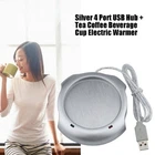 Product Description USB Hub&Warmer Warm Tea Coffee Cup Mug Warmer Liquid Temperature Electric Warmer 4 Port USB Hub Tea Coffee Cup Mug Warmer Liquid Temperature Electric Warmer For PC Heater Pad Features: 1. Adopt smart chip to control the liquid temperature around 20-40°C (40°C Max) 2. Use insulation material to prevent short circuit in case of water spillage 3. ABS plastic, durable and long service life 4. Compliant with USB 2.0 specification, Backwards compatible with USB1.1 5. Individual port overcurrent protective function 6. No driver installation requirement Specifications: Size: 103*95*22 mm Input: DC 5.0V 500-1000mA Material: ABS plastic Color: Silver Package included: 1x USB HUB & Warmer If you have any questions about this item, contact us with no hesitation, we are always here and will solve your problems. Thanks and wish you a nice day! Contact Us Payment Shipping Returns We dedicated to provide excellent products and services for all customers on ebay. hope we all can have a nice experiences on eBay. If you have any questions, our Customer Service staffs welcome you to email us. We strive to answer all questions and resolve any problems as quickly as possible. Thank you and have a nice day. We only accept Ebay payments from verified accounts with confirmed addresses. Orders will be shipped after receiving cleared payment. Item(s) will be shipped within 2 business days after payment is cleared. If you want faster shipping way. Please contact us before making payment. Sometimes due to problems with our transportation company system, your shipping information may be delayed to update. We recommend that you try again after 3-4 days. If you still haven't checked the shipping information, you can contact us. If you have any questions, please feel free to email our service specialists 24 Hours a Day, 7 Days a Week. We will reply you as soon as possible. Return/refund is accepted within 30 days after the buyer receives the item. NO exchange will be accepted after 30 days from the date when the item is received. Please contact us first before returning your product!!! Contact Us We dedicated to provide excellent products and services for all customers on ebay. hope we all can have a nice experiences on eBay. If you have any questions, our Customer Service staffs welcome you to email us. We strive to answer all questions and resolve any problems as quickly as possible. Thank you and have a nice day. Payment We only accept Ebay payments from verified accounts with confirmed addresses. Orders will be shipped after receiving cleared payment. Shipping Item(s) will be shipped within 2 business days after payment is cleared. If you want faster shipping way. Please contact us before making payment. Sometimes due to problems with our transportation company system, your shipping information may be delayed to update. We recommend that you try again after 3-4 days. If you still haven't checked the shipping information, you can contact us. Returns If you have any questions, please feel free to email our service specialists 24 Hours a Day, 7 Days a Week. We will reply you as soon as possible. Return/refund is accepted within 30 days after the buyer receives the item. NO exchange will be accepted after 30 days from the date when the item is received. Please contact us first before returning your product!!! powered by