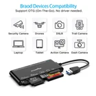 7-in-1 Memory Card Reader USB3.0 Super Speed Card Reader lets you easily add a multi-slot USB 3.0 Reader / Writer card to your USB 3.0 system enabled, make your life more efficiency and easy. Features cards -Read 5 memory at the same time. -7 Slots: SD * 2 (SDXC / SDHC / SD / MMC) + Micro SD * 2 (micro SDXC / SDHC micro / Micro SD) + CF (UDMA) + MS (apoyo MSXC) + M2 + xD / xD1.21 Independiente‖ LED status indicator for each card work -Built in 130 mm / Cable 5.1sin Compatibility slot * SD card: SDXC / SDHC / SD / Extreme III SD I / Ultra II SD / MMC (mini SD / Mini SDHC / RS-MMC / HS RS MMC may need an adapter) * CF Slot: CF I 3.0 4.0 / EXTREME I III CF / ULTRA II CF / CF SA / XS XS-CF / CF Elite Pro / CF PRO / CF PRO II * Micro SD (T-flash) Slot: Micro SDXC / SDHC micro / Micro SD * EM / MS Pro / MS Pro Duo / MS Pro MG / MS MG PRO Duo / HS MS Pro Duo MG / MS Pro Duo * M2 * XD / xD1.21 System requirements * Windows 8, 7, Vista, XP * Mac OS 9 y posterior * Linux: Modern kernel 2.x & 3.x based distributions with USB Mass storage support. Advantage of CR7 Smart Card reader. 1.All-in-one Card Reader 2.Simultaneous Reading 3.Plug & play, no driver needed 4.Read 5 different cards simultaneously 5.Keep you away from the hassle of constant unplugging and re-plugging 6.USB3.0 5Gbps Ultra-fast Data Transfer 7.Smart LED Monitoring 8.Wide System Compatibility Package Content 7-in-1 Memory Card Reader USB 3.0 x 1 24 months manufacturer's warranty and free lifetime technical support. 【7-in-1 USB Card Reader】This USB3.0 card reader satisfies your need of almost every single card. There are 1*CF slot, 2*SD, 1*TF, 1*Micro SD, 1*XD, 1*MS at your choice and convenience. What’s more, this card reader can read and write 5 cards at the same time, which can greatly improve your work efficiency. 【5Gbps Super Speed Transfer】5Gbps data transfer, finished in a blink. You can transfer your images and videos from your card to the computer soon, save a lot of time and improve your work efficiency. Also the USB3.0 card reader is compatible with the USB2.0/1.1 Port. 【Broad Card Compatibility】This USB3.0 card reader supports CF card, high-speed CF (UDMA), SD card, SDXC (up to 2 TB), SDHC, micro SD, micro SDXC, micro SDHC, TF, MS, M2, XD memory cards,etc. (Note: M2/TF is the same card slot). 【Broad System Compatibility】Plug to play, easy to operate and no extra driver needed. Compatible with most systems--Mac OS, Linux, Chrome OS, Windows XP/Vista/7/8/8.1/10,11,etc. 【Good Quality&Worry-Free Warranty 】Made of good materials and tested for thousands, you can use this card reader for long time with no problem. And we provide 12-month worry-free service and warranty for guarantee.