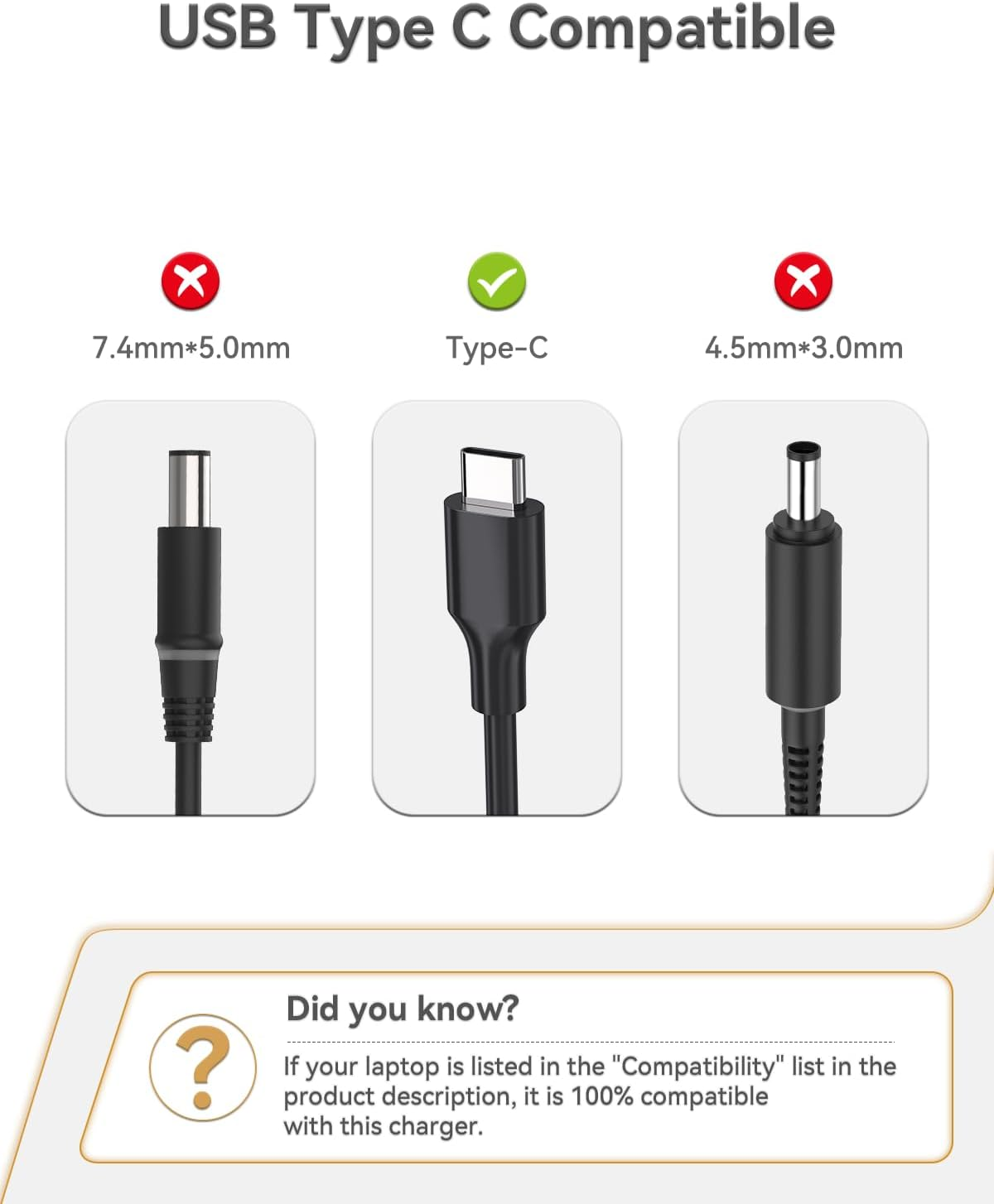 Store New Arrivals Add to Favorite View Feedback Contact Chromebook Charger USB C Laptop for HP Lenovo Acer Asus Dell Samsung Google Computer Adapter Power Type-C, Hp Chromebook X360 11 13 14 14A HP Spectre X360 13 Elite X2 Power Cord 45W Description Frequency Range 60 hertz Total Usb Ports 3 Current Rating 3 Amps Power Source Corded Electric Connector Type Used on Cable USB, USB Type C Unit Count 1 Count Main Power Connector Type 2 Pin Brand Name LJO-EEIH Brand LJO-EEIH Model Number SK902 Input Voltage 240 Volts Energy Specifications Met CE, RoHS Additional Features Fast Charging,Short Circuit Protection Output Current 3 Amps Manufacturer DongGuan Simer Electronics Co., LTD Connector Type USB, USB Type C Connectivity Technology USB Special Feature Fast Charging,Short Circuit Protection Compatible Phone Models Laptops Table Mount Type Wall Mount Amperage 1.3 Amps Portable No Mounting Type Wall Mount Wattage 45 watts Compatible Devices Laptops Output Voltage 15 Volts Built-In Media AC power adapter, AC power supply cord/charging cable Included Components AC power adapter, AC power supply cord/charging cable Input voltage:100-240v 1.3A (50-60Hz) / Type-C Charger 45W: Output:20V-2.25A 15V-3A 9V-3A 5V-3A.(CE Certificated) TYPE /USB C Charger for HP Chromebook X360 14-CA000 11-AE000 14-ca061dx;HP Spectre X2 X360;Elite X2,Pavilion X2,Pro 2 :HP Pro x2 612 G2 table;HP Chromebook x360 11 G1 EE;HP Pavilion X2 12-B000 10-N000 10-P000 Series;HP Spectre x2 12-A 12-AB Series,X360 13-W 13-w060nz 13-w063nr ,13-V Series;HP Elite x2 1012 G1 1012 G2 210 G2 Also compatible with ASUS Transformer 3pro T303UA 12.6" Xiaomi Air 12.5" Xiaomi Air 13 Sharp FS8010 Huawei P10 Huawei P10 Plus Huawei Mate9 Pro Ipad Pro 2017 HP Spectre 13 Xiaomi 6 Nubia Z17 Meizu Pro6 Plus Le Max2 TI TPS65982 Evaluation Module VIA dock Lontium dock Fresco dock Nintendo Switch Apple Macbook ProA1707 ZMI Power Bank QB820 Google Pixel Apple A1621 Huawei Mate9 Apple Macbook A1534 Package: 1x Ac adapter & 1x Ac power cable. Type-C port output up to 45W Power Delivery enables fast and efficient charging of compatible devices. Multi-Protection;Over Voltage Protection;Short Circuit Protection;CE-/FCC-/RoHS-Certified for safety Product Description Why Choose VUOHOEG? VUOHOEG As a professional supplier of laptop power, we have a strong supply chain and many years of sales experience. Multi-security protection intelligent security technology. High quality materials to protect your computer, more powerful and durable. The design process in line with the use of habits makes you more convenient to carry. VUOHOEG High Quality Charger Compatible with 45W USB C Chromebooks Charger High quality and professional service This universal USB C Laptop charger may be the best alternative to the Lenovo HP Samsung Asus Laptops series, with more stable discharge current, more advanced electronic control technology and better portability. On the Amazon platform, it has also been recognized by many buyers. At the same time, you need to pay attention to the model of the charger, If it isn't in line with the model of your computer back, you can contact our staff. Input: AC 100-240V 50-60Hz Output: 5V-3A 9V-3A 15V-3A 20V-2.25A 45W Connecter size: Type C/USB C. The charger comes with the US 3 Prong POWER CABLE. Package: 1x Ac adapter & 1x Ac power cable. The adapter charger has been test to ensure Type-C laptop models: Compatible with HP Notebook: Chromebook X360 14 15 Series:14-CA091WM 14-CA020NR 14-CA021NR 14-CA023NR 14-CA030NR 14-CA040NR 14-CA050NR 14-CA051WM 14-CA052WM 14-CA060NR 14-CA061NR 14-CA070NR 14-CA091WM 14-CA092WM 14-da0003tu 14-da0011dx 14-da0021nr 14-db0050nr 14-db0020nr 14-db0023dx 14-db0030nr 14-db0031nr 14-db0050nr 14-db0051nr 14-db0055cl 14-db0060nr 14a-na0010nr 14a-na0020nr 14a-na0022od 15-de0010nr 15-de0010br 15-de0021cl 15-de0035cl 15-de0043dx 15-de0517wm Spectre x2:12-a001tu 12-a001cy 12-a001dx 12-a008nr 12-a009nr 12-ab010nr 12-c012dx 12-c052nr 12-c053nr Pavilion X2: 12-b010nr 12-b017ca 12-b012ca 12-b020nr 12-b004tu 12-b096ms 12-B004NL 12-B005NF 10-p012nr 10-p010nr 10-p018wm 10-p020nr 10-p018wm 10-n103na 10-n054sa 10-n103na Elite x2 x360 1012 G1 G2 / 1013 G3 / 210 G2 Laptop,Pro x2 612 G2 table EliteBook 830 840 850 735 745 755 G5 G6 G7/ 1040 G4 G5 G6 / 1030 G2 G3 G4 / 1020 G2 Compatible with Lenovo Notebook: Chromebook 100e 300e 500e c330 c340 c340-11 c340-15 s330 s340 s340-14 touch s345 s540 c740 c940 s940 14w 14e S345-14AST IdeaPad Yoga 910 920 C630 C930 C940 S940 910-13 920-13 c930-13 910-13IKB 920-13IKB Glass 910-131KB 920-131KB C940-14IIL IdeaPad Yoga 720 730 730s s730 720-13 730-13 730s-13 s730-13 ThinkPad L380 L390 L480 L490 L580 L590 Yoga X270 X280 X380 X390 X390 X395 Yoga ThinkPad E480 E485 E580 E585 E490 E490s E495 E590 E595 ThinkPad T470 T470s T480 T480s T580 T580s T490 T490s T495 T495s T590 ThinkPad X1 Tablet 2nd 3rd Gen / X1 Carbon 5th 6th 7th Generation / X1 Yoga 2nd 3rd 4th Gen Chromebook N23 Yoga / Flex 11 Chromebook / ThinkPad 13 Chromebook 2nd Generation / 11e 4th Gen IdeaPad Yoga 910 920 C630 C930 C940 S940 910-13 920-13 c930-13 910-13IKB 920-13IKB Glass 910-131KB 920-131KB C940-14IIL IdeaPad Yoga 720 730 730s s730 720-13 730-13 730s-13 s730-13 720-13IKB 730-131KB 730-13IKB 730S-13IWL 730S-13IML S730-13IWL S730-13IML Compatible with Samsung Notebook: Chromebook Plus XE513C24-K01US xe521qab-k02 Chromebook Plus V2 XE520QAB-K01US XE520QAB-K02US XE520QAB-K03US Chromebook Pro XE510C24-K01US XE510C25-K01US XE521QAB-K01US ; Chromebook Plus LTE XE525QBB-K01US Compatible with Asus Notebook: Q325 Q325U Q325UA ZenBook Flip S UX370UA UX370U UX370 Chromebook Flip C101PA C101P C101 C101PA-DB02 Chromebook Flip C523 C523N C523NA C523NA-DH02 Chromebook Flip C223 C223N C223NA C423NA C423N C423 Chromebook Flip C214MA C214M C214 C434TA C434T C434 ZenBook 3 UX390 UX390U UX390UA UX390UA-XH74-BL Transformer 3 Pro T303UA T303U T303 12.6-Inch 2-in-1 Touchscreen L Chromebook Flip C213 C213S C213SA C213NA C213N C213SA-YS02 Compatible with P/N: ADLX45YAC3