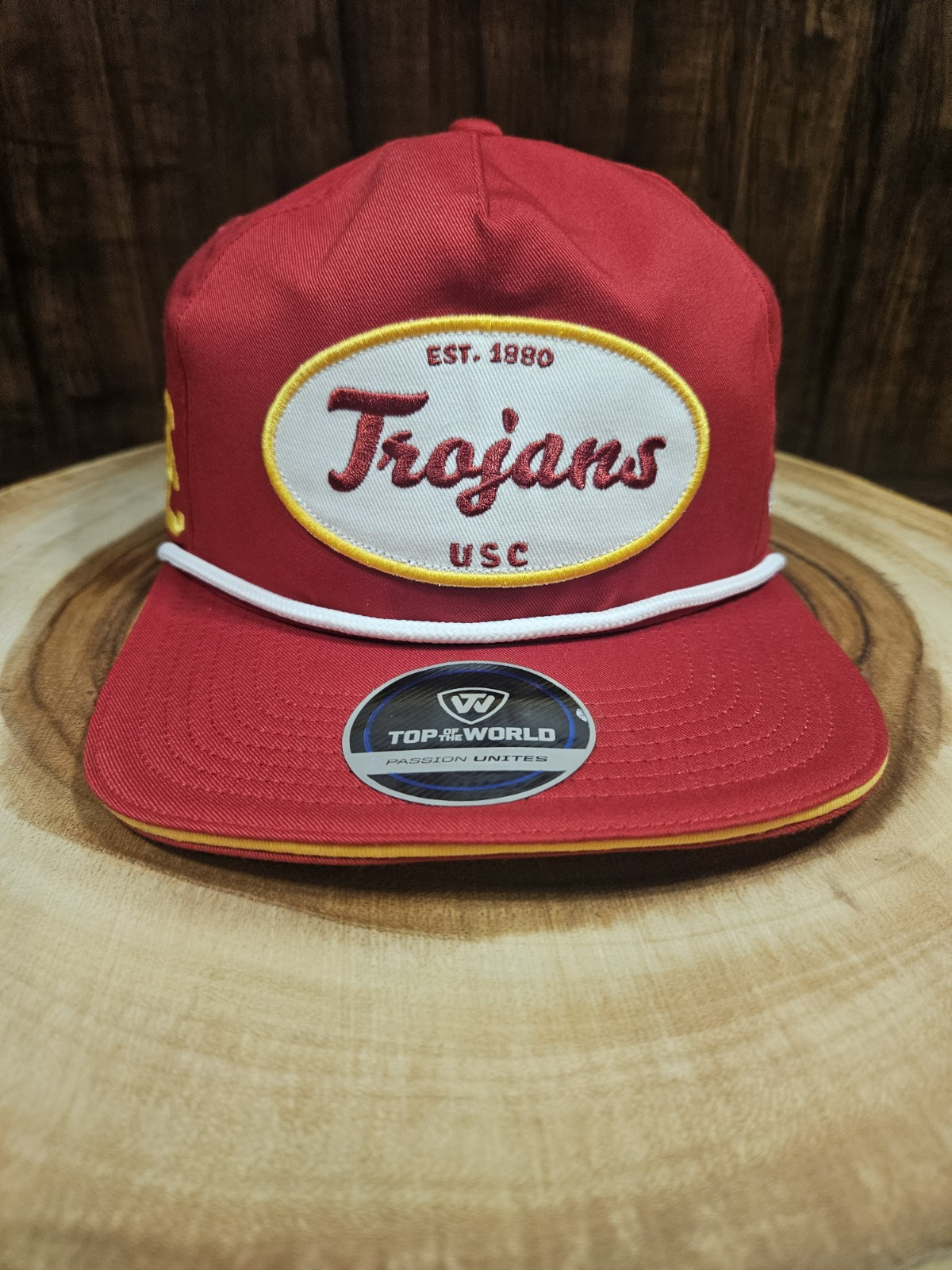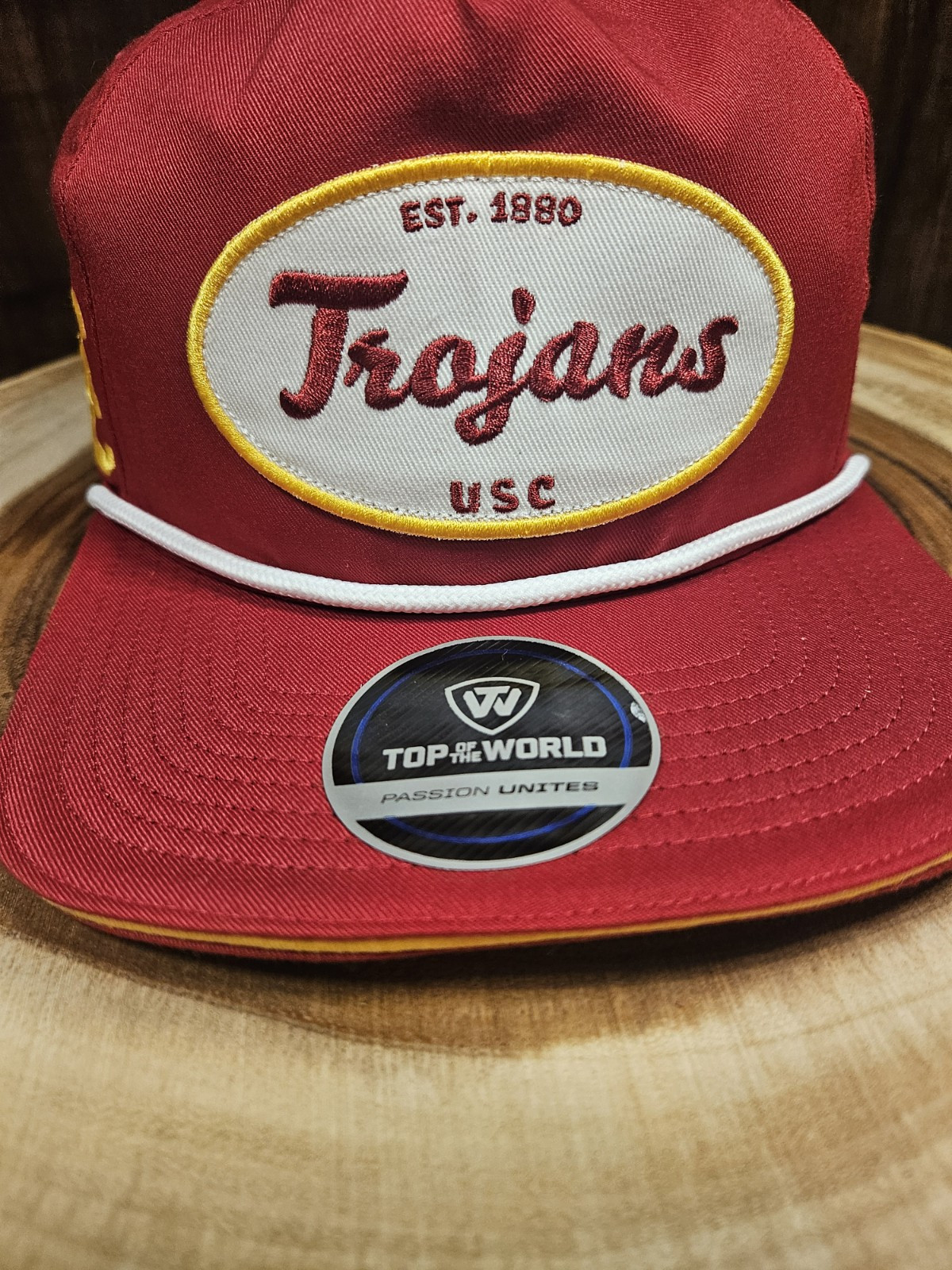 Elevate your headwear collection with the USC Trojans Top Of The World Golfer Rope Snapback Adjustable Hat. This Cardinal Red baseball cap is designed with a solid pattern and features the iconic USC Trojans logo, making it the perfect accessory for any loyal fan. The cap is made by Top of the World, a brand known for their quality and craftsmanship. This adjustable cap fits most head sizes and is perfect for any occasion, whether it's for travel, parties, workwear, or casual outings. The cap also features a rope and snapback closure for added comfort and style. Its college and university-themed design makes it a great gift for any golfer or sports enthusiast. Get your hands on this stylish cap today and show your support for the USC Trojans!