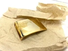 New old stock United States Marine Corps brass buckle for the Dress Blue Uniform. From age and storage, the brass has begun to darken and "turn" from the brown paper it was wrapped in. New in box, but old. Will need some cleaning up and polishing. Sold as is. No Returns.