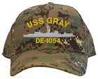 USS Gray DE-1054 Embroidered on (1) Baseball Cap in Your Choice of Cap Color 6-Panel Baseball Cap Specifications: Fabric 100% Cotton Twill Structure Constructed, Stiff Front Profile 3" Mid-Crown Panels 6 Panels, Seamed Front Closure Adjustable Hook & Loop Sizing One Size Fits Most Embroidered Design is Stitched Directly into Baseball Cap's Fabric and in the Thread Colors Shown. USPS First Class Mail Delivers In 2-5 (up to 7) Business Days To Most US Cities.