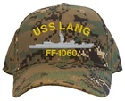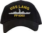 USS Lang FF-1060 Embroidered on (1) Baseball Cap in Your Choice of Cap Color 6-Panel Baseball Cap Specifications: Fabric 100% Cotton Twill Structure Constructed, Stiff Front Profile 3" Mid-Crown Panels 6 Panels, Seamed Front Closure Adjustable Hook & Loop Sizing One Size Fits Most Embroidered Design is Stitched Directly into Baseball Cap's Fabric and in the Thread Colors Shown. USPS First Class Mail Delivers In 2-5 (up to 7) Business Days To Most US Cities.