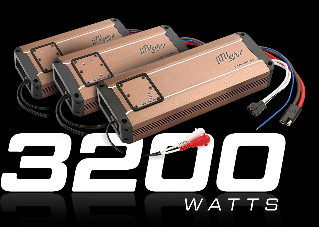 Can-Am® Maverick R Elite Series Stage 8 Stereo Kit 3200W We are proud introduce the Can-Am® Maverick R Elite Series Stage 8 Stereo Kit for the brand-new 2024 Can-Am Maverick R! UTV Stereo DMR0 BLUETOOTH MEDIA RECEIVER The UTV Stereo Digital Media Receiver- a perfectly sized, responsive + bass control Bluetooth® media receiver. The DMR0 has been designed to pop right in the space of two rocker switches! With built on clips to secure the unit in tight spaces. This media receiver is HIGHLY RESPONSIVE with a center rotary style dial that gets you to the desired loudness FAST! UTV STEREO ELITE SERIES -1X MONOBLOCK |E1200.1D| -2X 4 CHANNEL |E1000.4D| - TRIPLE AMP SYSTEM Our Elite Series Amplifiers are IP67 Weather-proof so you can be confident that they will be protected in whatever weather you find yourself in. This amp provides plenty of power to each channel for maximum sound quality and performance. UTV Stereo Flex 10" Low Profile Subwoofers + low profile enclosures Our sealed subwoofer enclosures are the ONLY enclosures on the market to offer more airspace than the OEM! We achieved that deep, rich bass output by handcrafting a sub-box which utilizes every inch of usable space to fit perfectly under each seat. CUT THROUGH WIND & ENGINE NOISE REAR 8" COMPRESSION HORN SPEAKERS THE PODS : Our 8” Cage Mount Pods feature a premium, durable design with a custom UTV Stereo Axia Alloys® dual-clamp system for easy 360 degree swivel. Perfectly molded and designed for use with UTV Stereo 8” Compression Horn Loudspeakers. THE HORNS : The 8” Compression Horn Speakers are high efficiency, high output loudspeakers built to perform exceptionally well at high volumes. They feature an element ready IP65 rating and UV Protective Coating--perfect for UTV applications. These loudspeakers feature a horn-loaded diaphragm which reproduces and projects loud, dynamic audio over 300 yards! UTV Stereo PRO SERIES 1" TWEETERS These tweeters pack a punch! They provide those extra high frequencies for the system which pairs perfectly with the massive bass output of the dual subwoofers. UTV Stereo 6.5" Dash panel speaker mounts Replace the old OEM dash panels with precut slots for 6.5" speakers and scored for 1" Tweeters. By running 6.5" speakers and tweeters on the dash, you will maximize sound quality while adding a sleek new look to your dash. utv stereo 8" led rgb speaker rings Each Elite Series UTV Stereo Kit comes with LED RGB Speaker Rings to pair with every speaker. These rings are easily customizable and controllable with our Bluetooth® Controller Kit (Also included with this stereo kit) UTV Stereo Bass knob The UTV Stereo Rocker Switch Bass Knob is the easiest way to control your audio level. This highly responsive bass knob is super easy to install - as it fits directly into a rocker switch location. Seamlessly Integrate this bass knob into ANY stereo system Features: UTV Stereo | Can-Am® Maverick R Elite Series Stage 8 Stereo Kit Includes: 1x - DRM0 Bluetooth Media Receiver 2x - Signature Series 6.5” Speakers 2x - Elite Series 8” Compression Horns 2x - Pro Series 1” Tweeters 1x - Rocker Switch Bass Knob 2x - Signature Series Low-Pro 10” Subwoofers 2x - 10” Subwoofer Enclosures 2x - 1000W 4-Channel Elite Series Amplifiers 1x - 1200W Monoblock Elite Series Amplifier 2x - 6.5” RGB Led Speaker Rings 2x - 8” RGB Led Speaker Rings Machine Fitment: Can Am Maverick R 2024+ Can Am Maverick R Max 2025+
