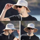 Bucket Hat Fishing Camping Safari Boonie Sun Brim Summer Cap UV Protection Have More Fun Outdoors: Safeguard your face, ears & neck with the harmful UVA and UVB sun rays with our bucket hats for men & women; Be it hiking, fishing, gardening, a stroll on the beach, fishing hats has you protected. Keeps Your Head Cool: The mesh panels around the hat allows for moisture and heat to easily escape these caps, which not only keeps your noggin cool, but also stay dry by reducing the sweat build-up. Lightweight & Quick Dry: Carry our hiking hats along wherever you go; fold the top up & fit it into any purse, backpack or carry bag; With quick drying ability, leave it under the sun for a minute & will dry in no time. Reliable Protection: We pride ourselves in offering high quality products you can trust for effective sun protection. If you have absolutely any questions, please message us. Specifications: Color:Multicolour Material: Waterproof Polyester Size: One Size Fits All Gender Unisex Applicable Season: All Season Weight: 153g (Lightweight) Features: Made of waterproof nylon fabric and polyester net mesh. Breathable, lightweight, waterproof, UV resistance, quick dry. Adjustable elastic buckle. To fit for average adults head. Adjustable chin strap to ensure that the hat can maintain comfortable conditions even in strong winds. Mesh vents can increase air circulation, keep you cool and breathable. Built in sweatband. Very comfortable to wear. Package Includes: 1 x UV Protection Bucket Cap