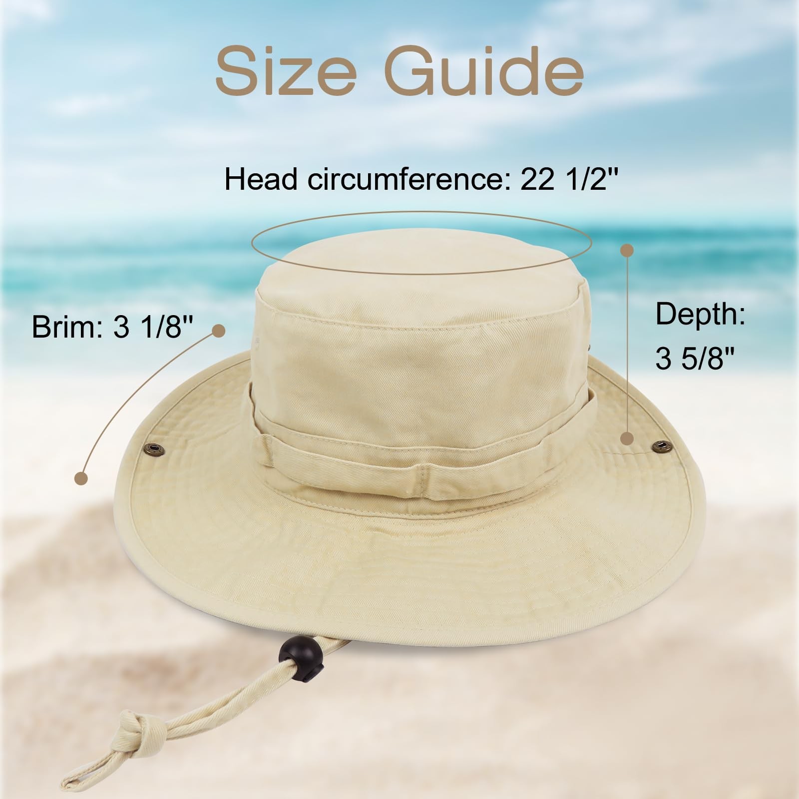 , a young brand in hats' field, has been extremely popular for its unique-design and premium-quality. We've created variety of classical designs, we plan to carry our classical hats to Amazon market, and hope you guys would like them. Specifications: -Adjustable chin strap can keep the hat firmly fixed on your head. Don't worry about the hat when enjoy the sea breeze -100% Cotton material will keep you cool and dry in the upcoming summer -Versatile hats , you can wear it while fishing, hiking, safari ,walking by the coastline or any outdoor adventure. -A great casual cap for the upcoming season; Offered in multiple colors, this cap can easily pair with your outerwear and your favorite pair of jeans! Washing instruction Hand wash with cool water; gentle machine washing; or spot clean. Total Customer Satisfaction Guarantee: If you are not 100% satisfied with the purchase for any reason, don't hesitate to contact our customer service center to request a refund or replacement. ONE SIZE FITS MOST: Casual style unisex sun hat. Hat size available from 22-23inch(58cm). SUN PROTECTION: UPF 50+ excellent sun protection. Provide you better protection from sunshine and damaging rays for face and neck. ADJUSTABLE & BREATHABLE: Double fabric design, sweat absorption. Adjustable Chin Strap with anti-drop button. FOLDABLE&PORTABLE: Can be folded into a small one, which is very convenient to put it in your bag, The hat weight just 0.15lb that is extremely portable for people. PERFECT FOR HIKING OR FISHING : Washed look gives it a tactical feel. Provides all day comfort and can be worn through every season for a fashionable way to protect from sunlight. Allows you to see long distances better by providing adequate shade.