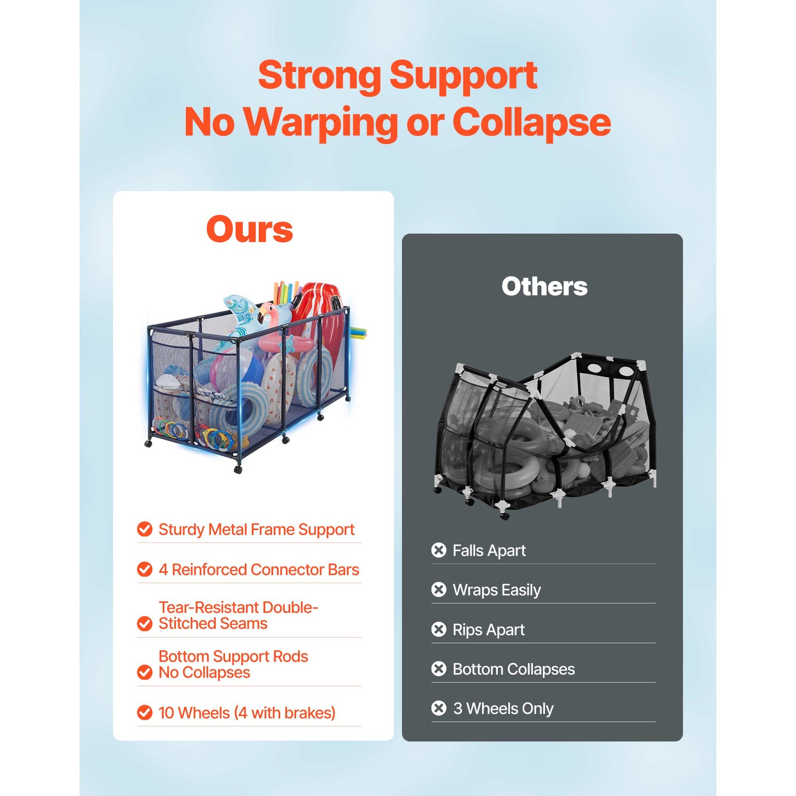Uimoso Rolling Pool Toy Storage Bin Organizer Metal Frame 48.8 x 32.7 x 32.7 in