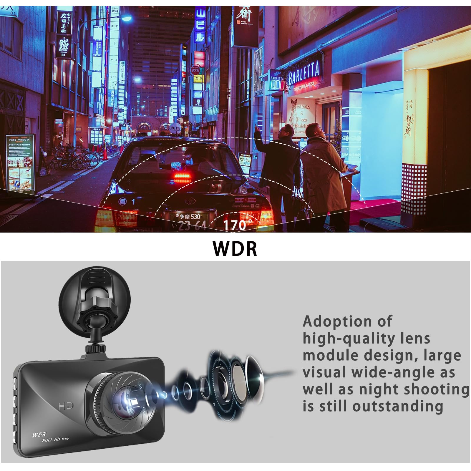 Dash Cam FULL HD 1080P RESOLUTION: Capture crystal clear video footage with the ultra HD 1080P recording at 30fps, ensuring you never miss a detail on the road. Dash Cam WIDE ANGLE LENS: The 170° wide-angle lens provides a broad field of view to record everything happening in front of your vehicle. Dash Cam NIGHT VISION: Enhanced night vision capabilities allow the camera to record clear footage even in low-light conditions. Dash Cam LOOP RECORDING: Automatically overwrites the oldest footage when the memory card is full, ensuring continuous recording without interruption. Dash Cam EMERGENCY RECORDING: Built-in G-sensor automatically detects collisions and locks the current video file to prevent overwriting, safeguarding crucial evidence.