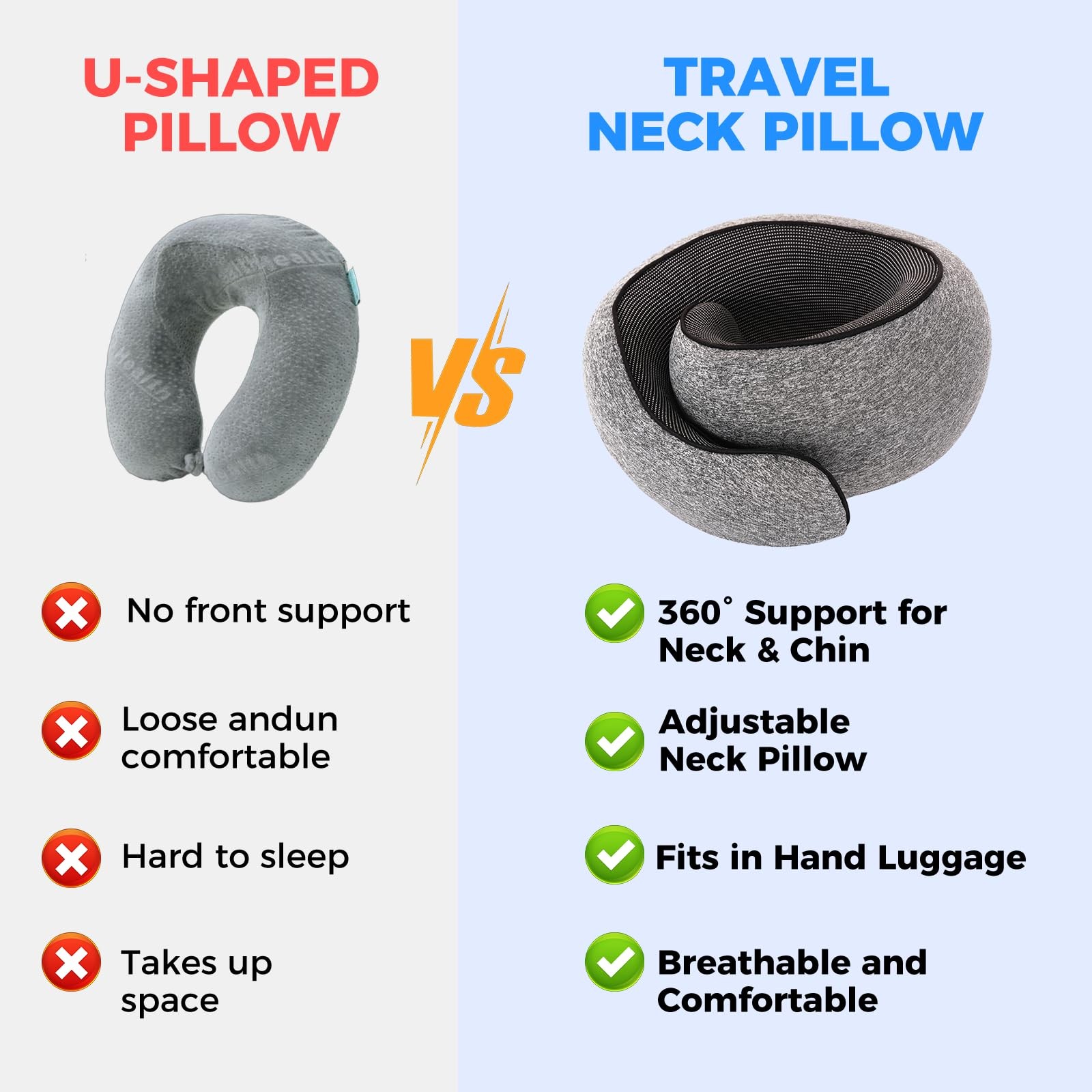 This travel pillow is a game-changer for long trips! The memory foam filling is super comfortable and really helps with neck pain, making it perfect for flights, car rides, or even just napping at home. I love that it comes with a breathable cover, earplugs, and a 3D eye mask—everything you need for a restful journey. The fact that it rolls up into a compact bag is a huge plus for saving space in my carry-on. Super soft, supportive, and packed with handy extras—definitely worth it!