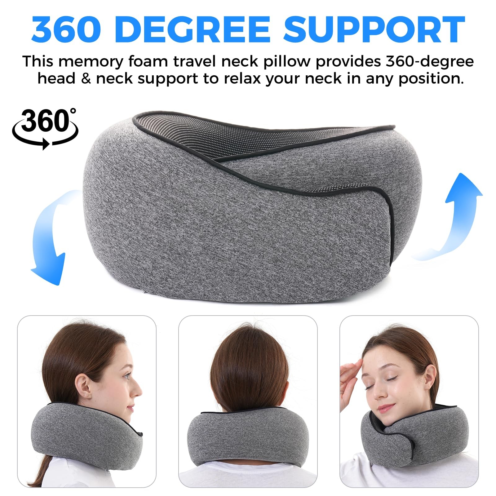 Portable Neck Pillow for Sleeping: This travel pillow can be rolled up into a storage bag.It is also equipped with earplugs and 3D eye masks for travel.The travel pillow kit is suitable for traveling by airplane, train, car, and used in the office or at home for a good rest. 【High Quality Memory Foam Pillow Filling】Travel pillow adopts the filling technology and memory sponge, which is soft and durable, can effectively relieve neck pain during the journey. Neck pillow for traveling is covered with breathable, sweat-resistant, and super-soft fabric to keep you cool and comfortable 【Effortlessly Portable】Travel neck pillow can be easily rolled up and put into a bag for easy carrying.travel neck pillow is also equipped with eye masks and earplugs for travel.neck support pillow features an anti-stick fabric layer that prevents other items from sticking to it when not in use. After peeling, it reattaches firmly, keeping the pillow clean and ready for your next use 【Sustained Use】Travel Pillow for Airplanes can be reused for a long time.It’s outer layer is detachable and easy to clean. The outer cotton material is breathable and skin-friendly, soft and comfortable. whether you’re on an airplane, in the car, or at the office 【Wide Application】Airplane neck pillow can be used not only when traveling, but also at home.When you go home from work to rest on the sofa or watch TV or read, travel neck pillow can relieve the fatigue of your neck, shoulders and back.flight pillow is particularly well-suited for professionals who travel frequently for work. travel pillows for airplanes is also a good present for relatives, friends, colleagues and parents 【Comfortable Design Neck Pillow】New ergonomically designed to provide all-round support and pressure relieving.The curve fits your chin, head, cheeks and neck, making your travel more comfortable