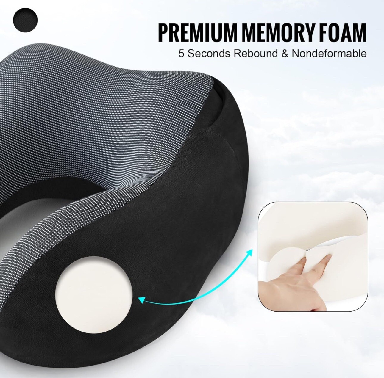 Elevate your travel experience with this luxurious Cirorld neck pillow. Crafted with soft velvet material, this pillow is perfect for long journeys. Its unique design with a hood for airplane travel makes it a must-have accessory for any frequent traveler. The black color adds a touch of elegance to your travel ensemble. This pillow is specially designed to provide comfort during travel. Its neck type offers support for your head and helps you sleep soundly. Made by Cirorld, a trusted brand in the travel industry, this pillow is a reliable choice for your travel needs. Upgrade your travel experience with this velvet memory foam pillow.
