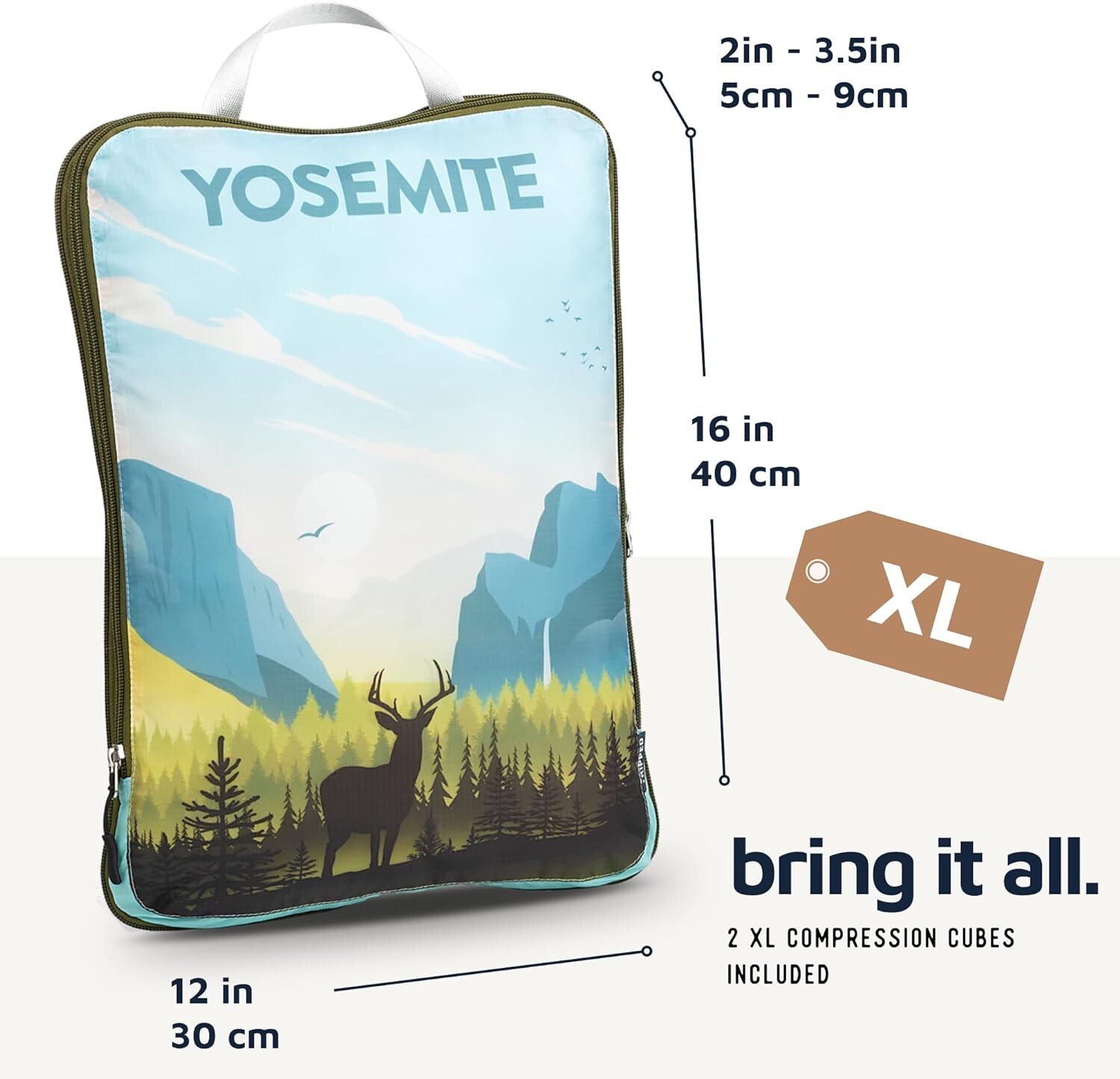 Packing Cubes for Travel-Extra Large Luggage Organizers 7 Piece Set-Ultralight, Expandable/Compression Bags for Clothes by National Parks PACKING CUBES MAKE TRAVEL EASIER. Compression cubes help you with packaging your clothes for upcoming trips by compressing the air out of them. Save up to 30% more space in your suitcase! LUGGAGE ORGANIZER- Keep different outfits in separate compression cubes and always be ready for what’s next! Easily pack away clothing like raincoats/heavier jackets that are not used as often. HOW MUCH DOES EXTRA LARGE SET HOLD? Extra Large packing cube holds approx 3 Mens Large Tshirts, Large puffy jacket, 2 long sleeve large shirts, one pair jeans, one pair mens pants. Large compression cube holds 2 mens tshirts, 1 pair mens pants, and 2 long sleeve shirts. Small compression cube holds about 8 womens shirts. Tube cube holds electronics, toiletries, underwear or swimsuits. Laundry bag is great for dirty clothes or shoes. USE EXPANDED OR COMPRESSED- Use these like normal packing cubes when you need to pack more. Packing less? Use the compression zipper to save even more space! Extra Large Dimensions Compressed size: 15.7x11x4in Large Dimensions Compressed size: 14x10x1in Expanded Size: 14x10x4in Small Dimensions Compressed size 10x7x1in Expanded Size: 10x7x4in 100% SATISFACTION SATISFACTION GUARANTEED- We offer the best travel accessories at a fraction the cost. If you're not happy with your purchase, we'll replace or satisfaction you immediately if you just drop us a line!