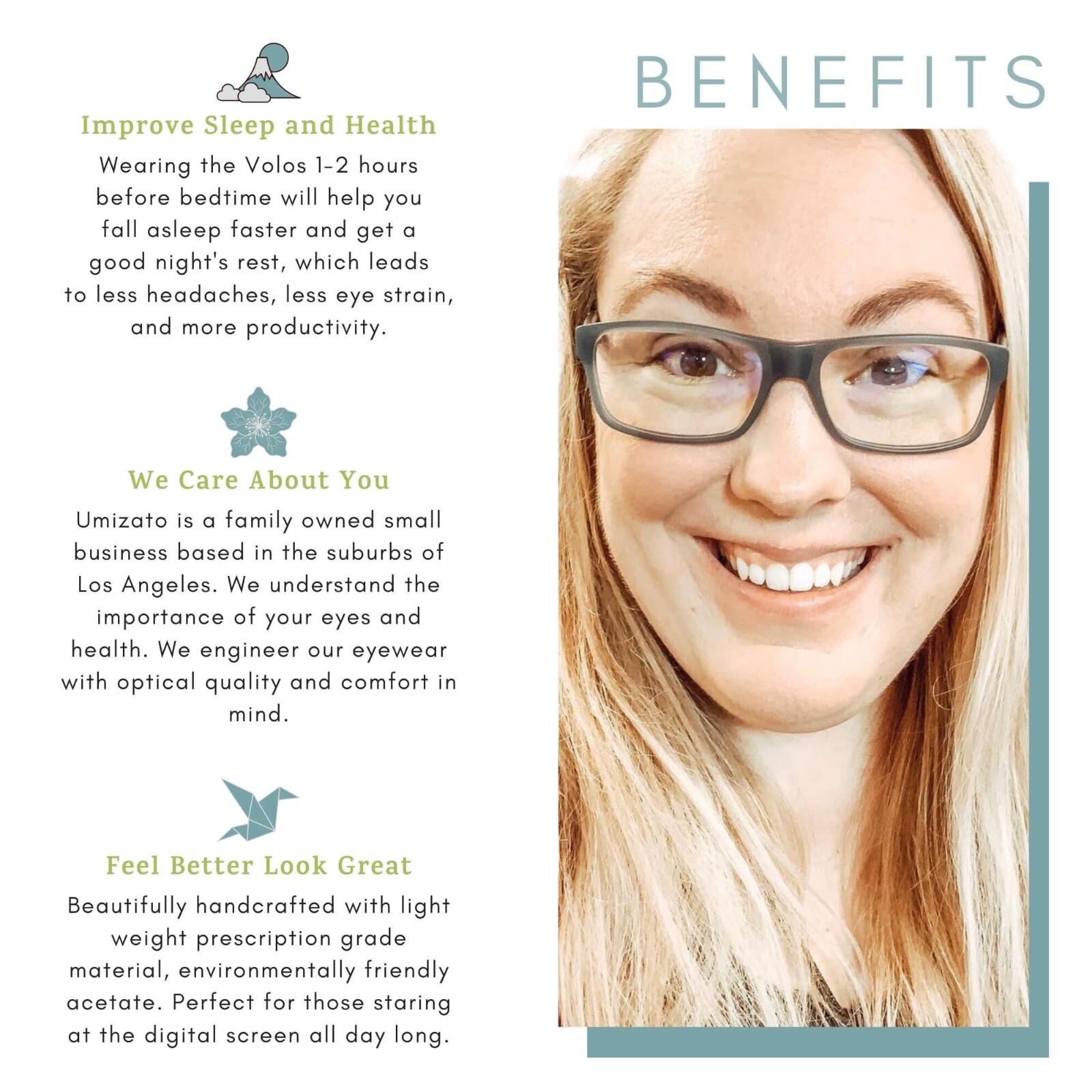 Brand New Factory Sealed (Eyewear case may need extra gluing). Photo is of the actual item. Usually ships within the same or next business day Returns accepted only if it's brand new in original condition it was sent in. 99% MORE RELAXED - Wear these blue light blocking glasses for women and men 2-3 hours before bed time, and fall asleep faster with better quality sleep by regulating your melatonin. Our 3rd party independent lab tested lens with minimal tint are engineered to reduce fatigue, eye strain, headaches, migraines, dry eyes, and light sensitivity. LIGHTWEIGHT and OPTICAL QUALITY - These womens and mens blue light glasses with premium quality frames are handcrafted using beautiful acetate that's both lighweight, durable. With ergonomics in mind, the spring hinges make them flexible and comfortable for a small or large face. Weighs only 28g, you won't even notice they're on! They make the best gaming glasses for eye strain. PROTECTION WHERE IT MATTERS - Unlike other blue light filter glasses and computer screen glasses, Umizato lenses filter out 30% blue light at 400-470nmn and 90% at 400-500nm, while also having low color distortion clear lenses. 455nm is the peak point which LED and digital devices such as tv, monitors, and smartphones emit blue light from . Our scratch resistant lenses include premium coatings for antiglare protection safety and oil resistance (less fingerprints and cleaning). DESIGNED BY PEOPLE WHO CARE - Umizato is a family owned business located in Southern California. We designed these blue blocker glasses for men and women with a vintage in mind. They even come with a complementary modern hard shell case, and a microfiber cleaning cloth. (Lentes para computadora)