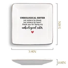 Unbiological Sister Gifts Jewelry Dish, Gifts For Best Friend, Unbiological Sister Jewelry Tray, Sister Ring Dish for Friend Birthday Gift, Rings Earring Tray Gifts for Trusted Friend Accessories Product Details Color: white Brand: JRTW Material: Ceramic Style: Minimalist Recommended Uses For Product: Face makeup Product Dimensions: 3.9"D x 3.9"W x 0.8"H Target Audience: Women Shape: Square Occasion: Christmas, Wedding, Birthday Finish Type: Polished Target Audience: Women Brand Name: JRTW Manufacturer: JRTW Finish Types: Polished Material Type: Ceramic Inner Material: Ceramic Item Dimensions D x W x H: 3.9"D x 3.9"W x 0.8"H Shape: Square Color: white Occasion: Christmas, Wedding, Birthday Style Name: Minimalist Closure Type: no closure Number of Items: 1 Jewelry Storage Type: Jewelry Dish Number of Compartments: 1 JEWELRY DISH: This jewellery tray is made of ceramic, it can hold some jewellery such as rings, earrings, necklaces, bracelets, etc. It helps you to organize your jewellery, so you can easily find the jewellery you want to wear. PERFECT GIFT: The jewellery holder tray is the perfect gift for women who love jewellery. It can be used as a Valentine's Day gift, bridal gift, birthday gift for friends, bridesmaids, sisters, aunts and grandmothers. MULTIPURPOSE: You can put jewelry bowl on your bedside table, window sill, bathroom sink, dresser to keep your rings, necklaces and other jewellery for you. UNIQUE HOME DECOR: Ring tray for jewellery is not only perfect for storage, but also ceramic jewelry tray is a lovely decoration to add beauty to any living space. SIZE: The trinket dish measures 3.9" long x 3.9" wide x 0.8" high. The small jewelry trayx for teen girls is especially suitable for women and girls with delicate patterns and unique designs. The dimensions are 3.9 inches x3.9 inches x 0.8 inch.