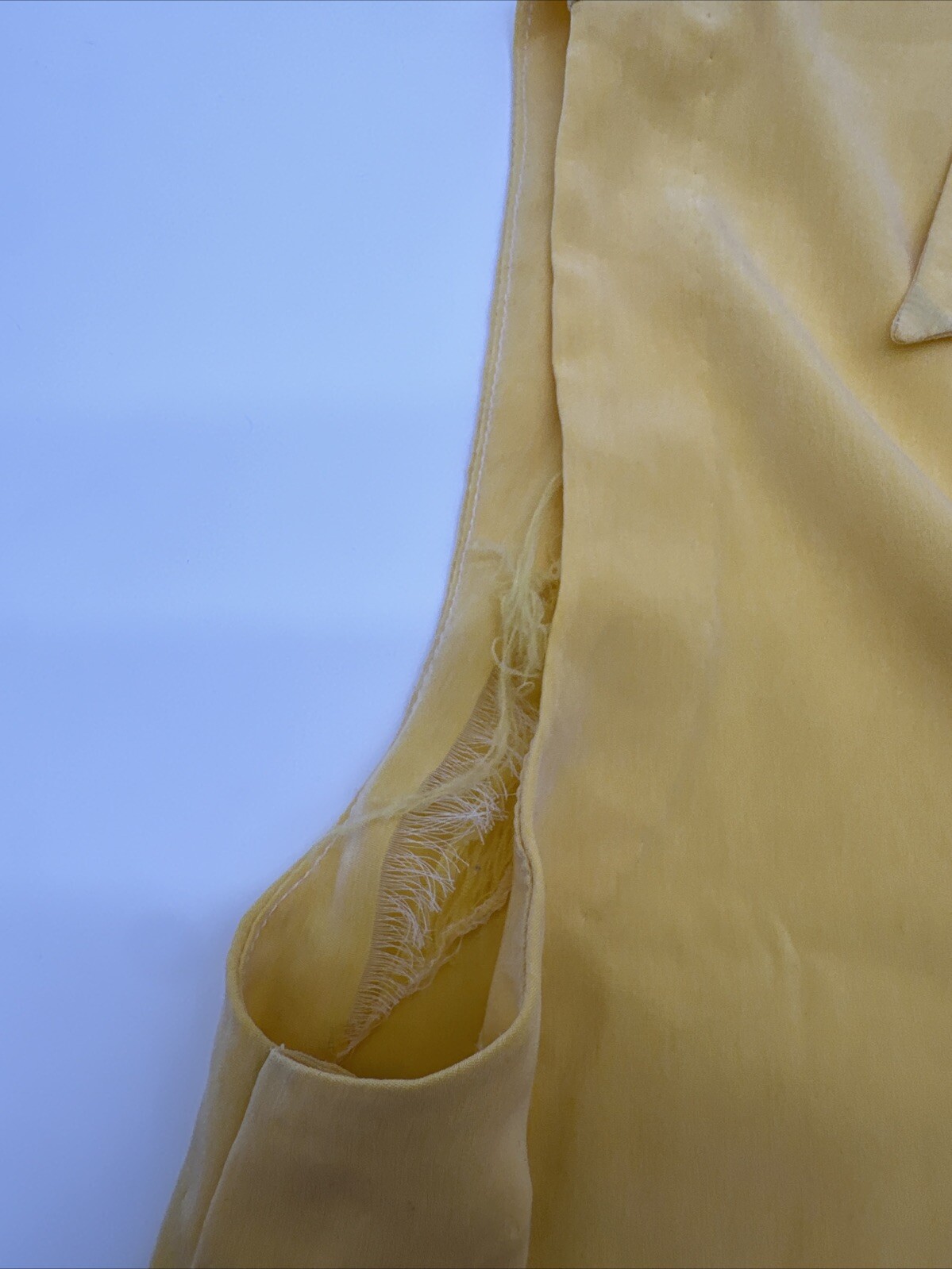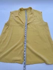 This women's blouse is a classic addition to your wardrobe. The sleeveless top features a collared neckline and a button closure, making it perfect for casual occasions. The blouse comes in a beautiful shade of yellow and is made of a blend of polyester and cotton, which makes it easy to care for. The blouse has a regular fit and is available in size L. The solid pattern and basic style of the blouse make it a versatile piece that can be dressed up or down. Whether you're going out for a lunch with friends or running errands, this blouse is a great choice. *Check the images above for the flaws and measurements of the item.