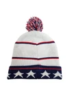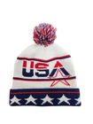 Unbranded Retro Patriotic USA Beanie Hat Cap Pom Pom Unisex Adult One Size Q9 In excellent condition Unbranded Retro Patriotic USA Beanie Hat Cap Pom Pom Unisex Adult One Size. Features retro style USA patriotic winter beanie hat, white navy and red tight knit fabric, unlined, folded cuff in navy with white stars, red white and blue pom pom, snowboarding beanie hat, winter hat. Unisex Adult one size fits most Fabric 100% acrylic This is a pre-owned item that may show signs of wear. In excellent condition, no flaws.