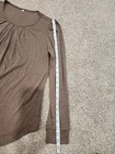 Top in excellent condition with no rips or stains. Measurements on photos. This women's blouse is a must-have addition to your wardrobe. The top features a scoop neck and long sleeves, with a solid brown color and made from polyester material. It is designed as a regular fit, suitable for everyday wear, and is perfect for any occasion. The blouse is unbranded and comes in size L, making it an ideal choice for women who want a basic but stylish top. The vintage style is not included, and it is suitable for regular size types.