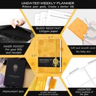 Menu Other Items Feedbacks About Us Contact Us Add To Favorites Undated Luxurious Weekly & Monthly Planner to Increase Productivity Hit Your Goals, Organizer Notebook Gratitude Journal Time Management Start Anytime, A5, Lasts 1 Year TAKE ACTION TO MAKE YOUR LIFE BETTER - The happy planner will help you find your life goals, and break down long-term goals into short-term goals, and integrate these short-term goals into all aspects of your life, so that you can unknowingly Break your procrastination and improve your happiness and self-confidence COMPLETE PLANNING AND CONTINUOUS IMPROVEMENT - Undated planner includes monthly calendar and weekly planning sections, monthly and weekly priority sections, and reflection sections. The planning section can be used to plan various things in your daily life, including important agendas in your work. A priority section that lets you focus on the things that matter most. The reflection section of passion planner allows you to continually improve yourself. This is the perfect time management plan ALLOWS YOU TO SPEND MORE TIME WITH YOUR FAMILY - After incorporating healthy habits into your daily life, you can use the monthly planner habit tracker to push yourself to stick to it, so you can quickly increase your productivity, and save more time to spend with your family and bring them a better life UNDATED, BEAUTIFUL COVER, TOP QUALITY - The diary planner has beautiful looks and useful features. The hardcover book is made of animal-friendly PU leather, and The cover is engraved with a delicate floral pattern. The paper is heavy duty pearl white paper with a thickness of 120gsm. This goal planner is undated and with a classic inner page design 12 months run in bulk and are separated from 52 weeks, use 3 colorful bookmarks to flip between weekly and monthly spreads BOUTIQUE COLLECTION AND GUARANTEE - The weekly planner contains a beautiful box, exquisite planner, great for giveaway. It's Size: A5 (5.7"W, 8.3"L) - Great for men's and women's handbags Product Description If you are looking for ways or props to make yourself better, please come to know the WZFFPAOJ Planner Weekly. What is your aspiration? WZFFPAOJ Planner will help you find your true self when you are overwhelmed. Think deeply about the current situation and find your list of goals. Use advanced and proven goal setting techniques to help you break down long-term goals, tap your potential, and complete goals one by one in an orderly manner. While achieving your goals, step by step closer to your life vision, so as to achieve achievements beyond your imagination! 10 minutes a day can change your life! Agenda, Meeting, Goal Planner, Personal Organizer, Gratitude Planner, Track Your Workout, Slim Plan, Budget Creation, Jot Down Ideas, Write Wish Lists. There are many more content waiting for you to discover. Create and schedule your year ahead with this gorgeous planner! Rose Series: This love will never change, and grow together with your lover. Sunflower Series: Born to the sun, pursue hope and never give up. Cherry Series: Elegance, purity and happy love. WZFFPAOJ Planner Details Self-discovery and life vision Dreams and life goals Annual main goals 3-month goals and action steps Strategies and Rituals Monthly Planning, Monthly Reflection Weekly Planning 21 blank pages for recording happiness moments Annual Target The realization of our goals in life is a long way to go. We need to take every step in a down-to-earth way, the annual goal is an important part of the journey. Set goals for this year, break them down and achieve them, your life will get better and better! Quarterly Goals and Action Steps Break down your annual goal into quarterly goals and create action steps for it, accomplish it, and change your laziness. Monthly Planning Mark up appointments and agendas on a spacious monthly view. Combine your goals and plan out your plans for the month. Make a list of things in each life area to look forward to this month to achieve life balance. Weekly Plan Break down your monthly plan into weekly, daily tasks to keep things fresh every day. Use the tracker to keep track of your every appointment and to-do list. At the end of the week, reflect on yourself and write your own summary in the blanks of the grid. Item Specification Sheet Size A5 Calendar Type Non Dated Format Notebook, Organizer Paper Size A5 Color Yellow Material Type Faux Leather Cover Material Leather Material Faux Leather Binding Unknown Binding Pages 191 Pages Item Dimensions L x W x Thickness 9.06"L x 6.3"W x 1.38"Th Recommended Uses For Product Productivity, time management, goal setting, and self-improvement Target Audience Adult Item Dimensions L x W 8.27"L x 5.83"W SHIPPING FREE FAST SHIPPING FREE SHIPPING We are always working hard to ensure your package arrives as soon as possible. Please understand that some factors like weather, high postal traffic, and the performance of shipping companies are outside of our control. We offer free shipping to the lower 48 states. We do not accept P.O. Boxes. Please provide a physical address. If you have a problem or question regarding your transaction please contact us immediately. We will work with you to resolve any problem you may have. Thank you