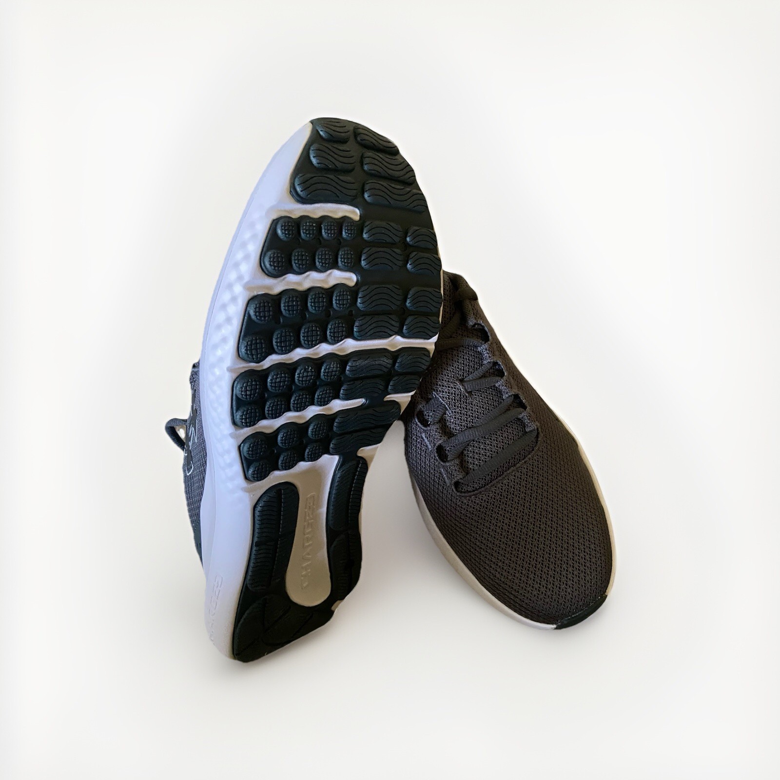 The Under Armour Charged Surge 4 in size 9 for men is a casual shoe made from recycled materials in a stylish gray color. With a UK shoe size of 8 and US shoe size of 9, this shoe offers comfort and durability for everyday wear. The model number 3027000-106 provides a unique identifier for this eco-friendly and fashionable sneaker, perfect for any casual or athleisure outfit.