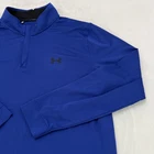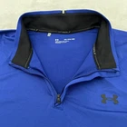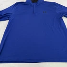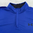 Brand: Under Armour Style: Mens long sleeve performance golf pullover with mock neck and quarter-zip front. Color: Royal blue solid with tonal stitching and black interior collar lining. Size on tag: 2XL / 2TG / EEG (Mens loose fit). Material: 95% polyester, 5% elastane (spandex) performance knit; smooth, lightweight stretch fabric. Country of origin: Made in Jordan. Details: Mock neck collar, covered 1/4 zip front closure, long sleeves with self-fabric cuffs, straight hem, Under Armour logo at left chest, tear-away care tag, relaxed fit designed for golf, training, or casual wear. Interior tags and codes: RN 96510; CA 41095; inner tag code 3WZW5MCMP2N5HPH. Features: Moisture-wicking, stretch fabric for comfort and mobility during on-course or everyday activities. Please See All Photos to Assess Condition All Measurements taken when laying flat in inches Please Message Me if You Have Any Questions All clothing has been washed and cleaned per eBay's policies This item was photographed in a home with 2 dogs. After listing, it is sealed in a poly bag and stored in a box inside a smoke-free garage. While we clean every item per eBay policy, occasional pet hair may still be present.