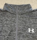 This Under Armour shirt is a men's 2XL quarter-zip pullover in a stylish grey heather color. It features a mock neck with a stand-up collar and a subtle Under Armour logo accent. The lightweight and breathable fabric blend makes it perfect for activewear purposes such as gym training, golf, and running. The long sleeves offer additional coverage, making it suitable for various athletic activities. With its athletic fit and modern design, this Under Armour shirt combines functionality and style for active individuals. This 1/4 zip is in good preowned condition with little sign of wear, please see ALL photos for a better idea on condition, any measurements, or details to the shirt.