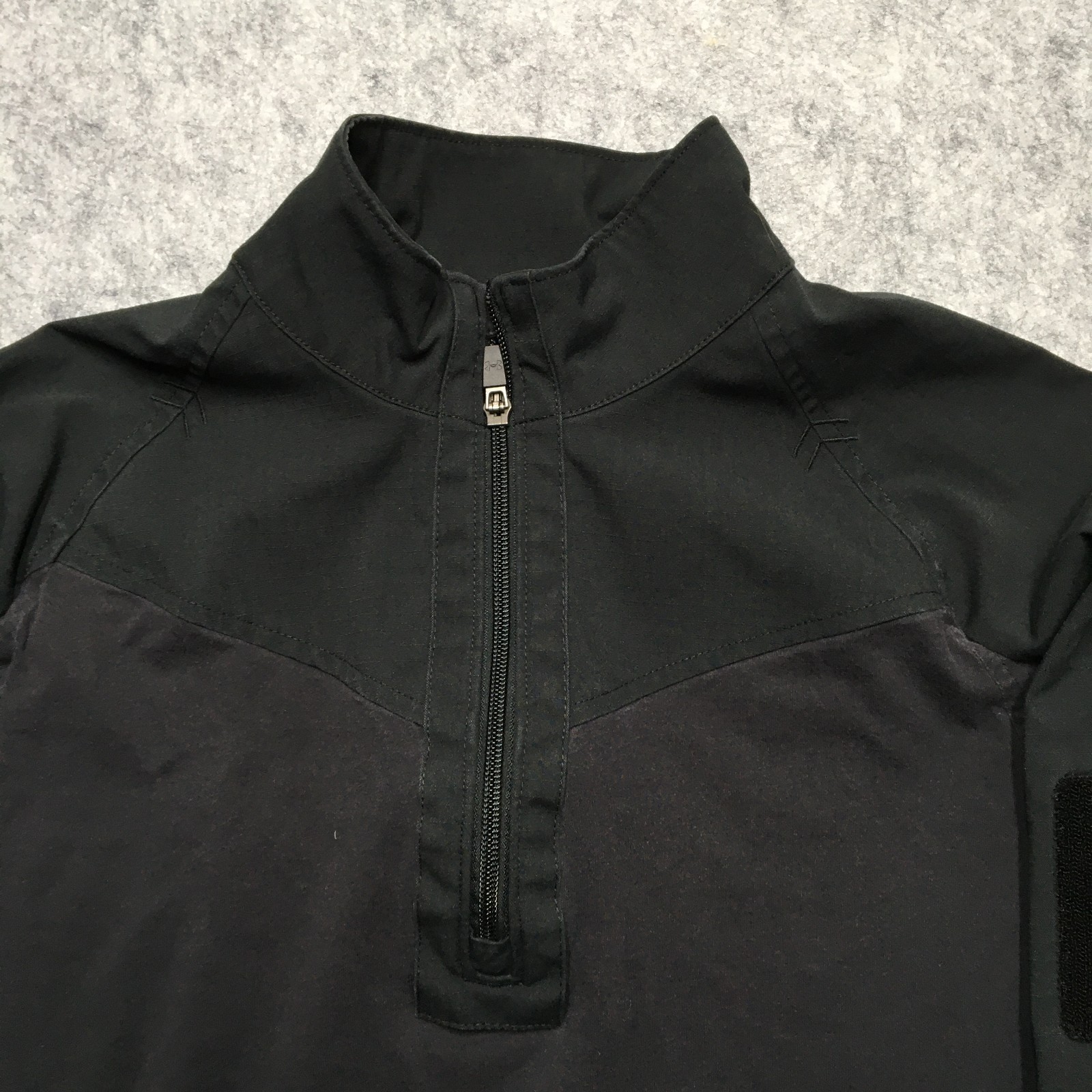 Brand: Under Armour Style: Mens long sleeve tactical pullover shirt with mock neck and hidden 1/4 zip front closure. Color: Solid black. Size: Mens Large (LG/G/G) loose fit per interior neck tag. Material: Content tag lists cotton and polyester knit body fabric with polyester yoke and sleeve panels for added durability. Country of manufacture: Made in Indonesia. Design details: Mock neck collar with covered quarter zip opening, ripstop-style woven shoulder and sleeve panels, hook-and-loop patch panel on one upper sleeve for ID or morale patches, adjustable two-button cuffs with sleeve plackets, and straight hem; soft knit body designed for comfortable wear under gear or outer layers. Branding and logos: Tonal Under Armour logo printed at back neck, Under Armour Tactical wordmark and logos on inner neck tape, and woven interior neck label with UA logo and size information from the Under Armour TacticalGear line. Ideal for: Military and tactical applications, law enforcement or security uniforms, range days, airsoft or paintball, and general outdoor or work wear where a durable tactical shirt is preferred. Add a second (or more) item to your cart from my store to receive a discount on your order! [does not apply to orders made with Best Offer] (shown in cart) Shipping is a non-negotiable flat rate based on size and weight. Each additional item is only $2 more in shipping. Please message me with any questions. I accept free returns for any reason within 60 days of delivery date, including "Does not fit" and "Just didn't like". Please note original shipping may be withheld in certain situations. Items are shipped from a smoke-free home and washed with Free & Clear detergent (except Dry Clean Only items). US Seller. Please message me with any questions! Items shipped within 1 business day (unless there is a vacation note).