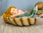 This beautiful Green Tailed Young Mermaid Girl figurine measures approximately 2" tall, 4.5" wide and 3.5" deep approximately. This beautiful Green Tailed Young Mermaid Girl figurine is made of high quality polyresin, individually hand crafted and painted. Color tone may vary from picture. If you are a big mermaid fan or know someone who loves mermaids, you will love this figurine! It features a beautiful young mermaid with a unique green tail sleeping on a giant oyster shell bed. This is an Ebros Gift exclusive collection. Ebros Under The Sea Baby Mermaid Sleeping On Oyster Shell Enchansia Figurine Sculpture Video will open in a new window Using the mobile app? Copy this link into your browser: