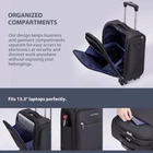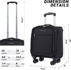 Underseat Luggage: This compact 18x14x8 inch underseat personal item bag is designed to fit under most seats on major US airlines, including American, Delta, Southwest, Spirit, and Frontier; We’ve thoroughly researched seating configurations across various aircraft to ensure our bags that fit under airline seats meet your needs; However, please be aware that underseat dimensions can vary by flight and aircraft model within the same airline. Use our guide as a reference or check your flight's seating guide to ensure our underseat personal item travel bag works for your specific travel plan Underseat Carry On Size: Exterior Dimensions: 18 H x 13.5 W x 8 D Inches; Packing Dimensions: 14.5 H x13.5 W x 8 D Inches; Weight: 4.8 lbs; Volume: 24L Easy for Security Checks: This underseat luggage features dedicated compartments for a 13.3-inch laptop, electronics and essentials, ensuring easy access and a faster airport experience Versatile for Travel Needs: Spacious main compartment works well for cloths/shoes; Easy-access front organizer for small items; Extra side pocket for headset, water bottle or glasess case ect; The side pocket features a headphone hole, allowing you to store a power bank inside and thread a charging cable through to charge your mobile phone (battery not included). This method is more convenient and durable than using a USB port Standard Features: Made of polyester with water-resistant; Eight smooth spinner wheels; A back sleeve for easy stacking on larger bags; An adjustable telescopic handle to fit various heights Handle Stability Clarification: A moderate wobble in the telescopic handle is a normal feature that ensures smooth and effortless extension and retraction; Comes with a full warranty against manufacturing defects, so you can travel with confidence, knowing your luggage is protected and of high quality