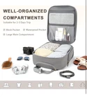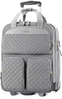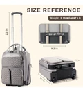 Underseat Carry On Luggage with Wheels, Multiple Compartments Airline Grey About this item Airline Approved: Carry on luggage with wheels measures 17.4" H x 13.2" L x 7.5" W (including the height of the wheels), meeting approved airline carry on luggage dimensions. It easily fits into overhead bin and under the seat. This underseat carry on luggage with wheels complies with major airlines' published carry-on luggage and personal item size requirements, including Delta Airline; Southwest Airline; Spirit Airline ect Hassle-Free Travel: The 180° opening design meets TSA standard, allowing for quick inspection and convenient boarding. Thanks to the smooth rollers, it effortlessly passes through the airport with a full underseat carry on luggage. Additionally, the luggage strap at the back allow the underseat luggage to be secured to larger suitcases Multifunctional Compartments: The main compartment provides ample space for all your travel essentials and clothing. It also includes a waterproof pocket to protect your toiletries from leaks and spills. Additionally, there's a foam-padded compartment that can safeguard two laptops up to 18 inches in size simultaneously. Three front zippered pockets offer convenient access to frequently used items, keeping everything organized and easily reachable Secure Design: Constructed from premium high density polyester, our underseat suitcase provides reliable protection against spills and cuts, keeping your belongings safe and dry. The foam-padded laptop compartment protects your laptop from impacts. The double zipper design with lock hole allows you to lock it for theft prevention Sturdy and Ergonomic: Featuring an all-aluminum trolley handle for easy pulling, this underseat rolling bag is ergonomically designed for the comfort of frequent travelers. The soft handle relieves hand fatigue, ensuring a comfortable grip throughout your journey