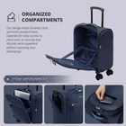 360-Degree Spinner Wheels UPGRADE YOUR TRAVEL EXPERIENCE: Most Improvement is we shorten the long cover zipper pocket, keep the enough space for running the slider smoothly; also move the handle from the cover zipper pocket to the top, so you can carry the whole luggage easily, and adjusted the side pocket a little bit horizontal, so the small items will not be slipped out of the bag 14 Inch Underseat and Carry On Size: Fits in most airline overhead compartments and under the seat in front of you. Packing Dimensions:14.5(H)x13.5(W)x7.5(D) Inches, Overall Dimensions(included wheel): 17(H)x13.5(W)x7.5(D) Inches, Weight: 4.6 lbs; Volume: 24L MATERIAL&PREMIUM QUALITY: Made of premium quality polyester with water-resistant and Anti-Scratch fabric(bottom protected); Multi directional 8 spinner wheels and telescoping push-button handle reduces wobble and easy mobility, adjusted the side pocket a little bit horizontal, so the small items will not be slipped out of the bag ORGANIZED: Spacious main compartment works well for cloths/shoes. Features a padded laptop Compartment that fits laptops up to 13.3 inches. Easy-access front organizer for small items. Both side with zipper pockets for battery and water bottle. Great Value: USB Port lets you charge electronics on the way (batteries not included) HASSLE-FREE TRAVEL: Top with sturdy carry handle for easy lifting. Back with smart sleeve allows bag to be placed over handle of most upright luggage pieces Underseat To You: Specially designed to fit perfectly under seats on economy airlines, our compact underseat bag is ideal for frequent flyers. Make your travel hassle-free with this perfect companion for economy flights