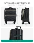 30 Days Return Policy Fast Delivery Trusted seller Underseater Carry On Luggage Airline Approved with Spinner Wheels, 16 Inch Luggage with TSA Lock, Overnight Rolling Softside Suitcases for Women, Black Product Description Airline-Approved Boarding Size: Underseat carry on luggage with wheels meets most airline requirements for overhead compartments and fit under the majority of airline seats. Underseat suitcases with wheels are suitable for 3-5 day air, train, or road trips. Travel luggage is upgraded with a double-ended zipper and side-mounted TSA-approved lock for added security and to ensure smooth airline baggage screening. The carry on luggage measures 18.3x13.5x6.7 inches and weighs only 5.73 pounds. Easy Access at All Times: 16 inch carry on luggage has a 14" computer compartment and the computer compartment has securing straps to keep your computer from shaking. Luggage with spinner wheels has 2 front pockets for quick storage of boarding passes, magazines, books and more. Rolling suitcase has 2 convenient side pockets for storing water bottles or umbrellas. Sturdy carry handles on the top and sides of the suitcase offer a variety of travel-carrying options. Organized Storage: The interior of the carry on suitcase has huge main compartments with a buckle compression system to keep your travel items organized. The interior of the suitcase with wheels comes with a zippered utility pocket for small items. Capacity:33L Getting Around Is Easy: The small carry on luggage comes with an ergonomic grade 3 aluminum tubular handle and is available in a variety of heights while minimizing wobble for your comfort. With 360° spinner wheels, suitcase for women is quiet and durable, making it easy to navigate airports, train platforms, sidewalks, and more. The womens luggage made of quilted durable polyester fabric offers a sturdier base that allows it to glide easily, even when fully loaded. Premium Service And : will back each piece of tsa approved carry on luggage with a 2-year manufacturer's warranty. Before shipment, soft sided luggage with spinner wheels undergoes thousands of rigorous tests to ensure that our suitcases with wheels carry on size meet strict standards and can withstand any journey. If t are any quality problems, please contact us for a timely and satisfactory answer! Shipping Returns Payment Shipping Shipping is FREE to all addresses other than APO/PO boxes in the lower 48 states. All our stock ships from US-based warehouses. Shipped via USPS or UPS (depending on location and package weight) Unless stated otherwise, all orders will ship within 24-72 hours of your payment being processed. Check our feedback to see the great reviews of FAST shipping we offer. Returns As our valued customer, we will do our best to make sure the product you receive arrives to you on time and as expected. If you are not satisfied with your purchase, please contact us within 30 days of receiving your order to process a return. Payment We currently accept payment via eBay managed payments only. Once payment is cleared, we will dispatch your shipment within 1-3 business days. Please refer to the "Shipping" tab for more information regarding shipping speed to your destination.