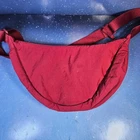 Uniqlo Round Mini Shoulder Bag in a vibrant wine red. This versatile crossbody features a crescent shape, adjustable strap, and a durable nylon shell. Perfect for daily essentials, travel, or festivals. Lightweight and water-resistant material with a secure zip closure. Small stain on back as shown in pictures. See measurements in pictures. Keywords: Uniqlo, Round Mini, Shoulder Bag, Crossbody, Wine Red, Maroon, Nylon, Travel Bag, Festival, Minimalist, Crescent Bag, Unisex, Everyday, Lightweight, Water Resistant