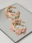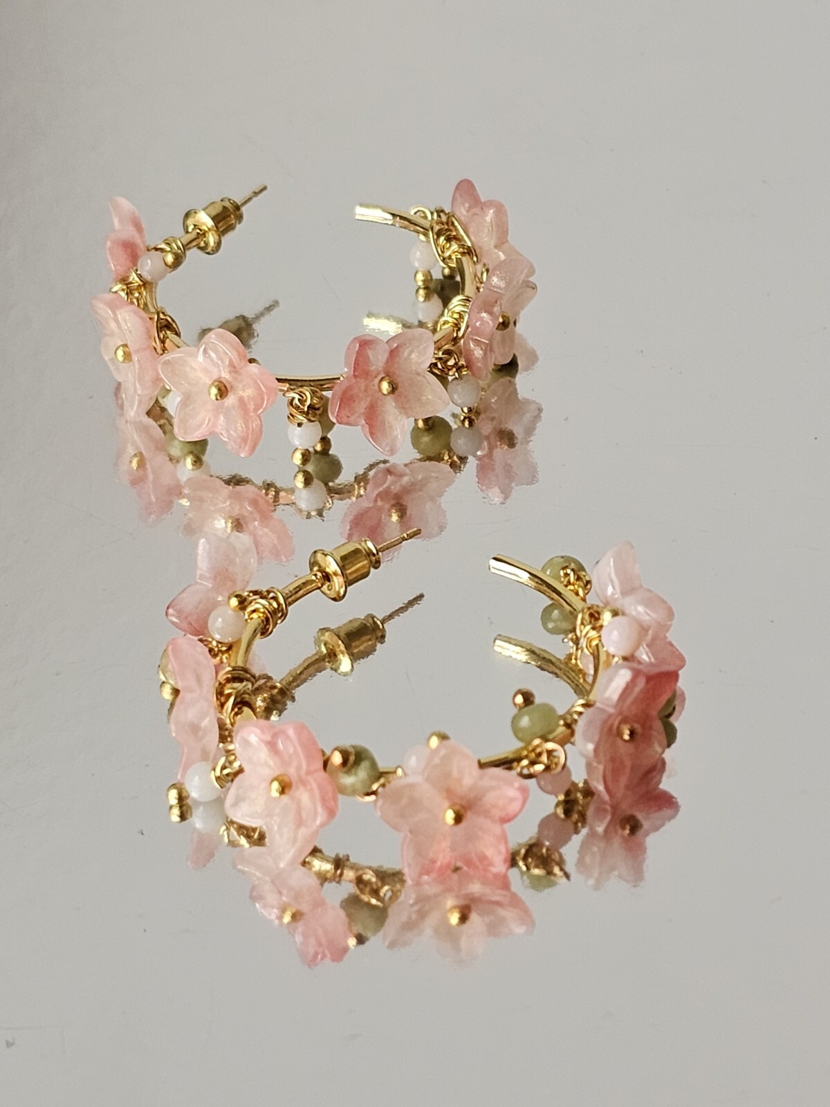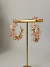 Romantic, dreamy, and floral are these beautiful botanical hoop earrings. Hand wrapped Czech Lampwork flowers with pastel shades of pink and rose, accompanied by pastel pink conch shell & yellow agate and jade, prehnite beads to mimic flower buds on a vine. Flowers aren't just for spring anymore! Classic elegance, perfect for a bride to be, or her bridesmaids, a beautiful heartfelt gift for mom or your bff, or treat yourself! Wear them with a beautiful sundress and a lovely, large floppy hat - timeless... DETAILS: - Soft pink Lampwork 12mm glass flower flowers beads - 3mm Pastel pink conch round beads - 3mm prehnite round beads - 2" 14k GP hoop earrings with surgical steel posts. Please feel free to reach out with any questions or to request additional photos, prior to purchase. Custom orders are always welcome! If you see something you like in my Enay listings, but would prefer to see it in a different color (bead, gemstones, metals, etc.), just send me a message and I will do my best to accommodate. Please know that custom orders may take a few more days to produce, delaying your shipping time. One your order is complete, I will provide you with a tracking number to keep track of your order. DISCLAIMER: Please know that since natural gemstone colors and Lampwork beads are not exactly the same, they may vary slightly in color, shape, or even size. In addition, technology like your laptop, cell phone, iPad, etc. may give a different hue, which is why I try to keep the color true on my images as much as possible. If you are not sure, and need more information, please don't hesitate to ask for more photos! I'm happy to provide! BRACELETS: Please be sure to give me your 'actual' wrist size (your measurement may be requested) so that I can provide you with bespoke custom made jewelry for you. GP JEWELRY: I try to provide all my clients with quality beads and findings. Sadly, with the state of economy, vendors I've worked with have had to 'cut corners' on quality, yet still selling their product as 'true to description'. If for any reason, your jewelry starts to turn, loses its colors, breaks or anything of the sort within 30 days of purchase, please let me know right away so that I exchange or provide you with a refund*. All I ask is that with gold plate pieces require a bit more care - as perfume, lotions and body oils can tarnish these pieces. To ensure and preserve the beauty of your purchase, please do not apply perfume directly on to items, or wear your jewelry immediately after applying perfume and/or lotions. If you don't have time to wait after applying perfume, gently apply a bit of talc powder in the area to absorb the lingering oils that cause GP items to fade or pit. If cared for properly, can last you a lifetime! GOLD FILLED: In order to provide you with elegant jewelry at a reasonable price, I do offer the option of Gold Filled findings. GF jewelry is composed of a SOLID LAYER of gold that is bonded to a base of another metal such as sterling silver (vermeil), or copper, and NOT plated, which has been known to wear over time. Should you choose to opt for solid gold findings, please let me know, as I will quote you for the price increase. If you agree to the terms, I will require a deposit in advance before ordering these components to secure your order. *I offer a 30-day warranty for returns or repairs (with no signs of abuse or deliberate damage). Thank you for looking and supporting my small business, I greatly appreciate you. 🙏🏼 * Sorry, no international sales/shipping. The buyer assumes responsibility for providing seller a safe location for your order to be delivered to (Seller will not acvount for lost, damaged, or missing packages due to the USPS.)