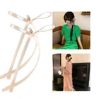 Unique Ribbon Bowknot Earrings Ear Pendant with Imitation Pearl Ornament Dangle Features: and high Elevating your with these Korean bowknot pendant earrings. Crafted with materials, these earrings offer a comfortable fit and adjustable length. for those who appreciate unique accessories that enhances their look. Designed for fashion enthusiasts, these earrings is stylish. From casual outings to special occasion, these earrings enhances your look. They complement any outfit, making them a go to choice for fashion forward individuals. Stand out from the crowd with these earrings. Specifications: Component: Alloy, Ribbon, Imitation Pearl Size: 13cm/5.12in Color: As choose. Quantity: 1 Pair Package Includes: 1 Pair x Earrings note: Please allow 0-1cm error due to manual measurement. please make sure you do not mind before you bid. Due to difference between different monitors, the picture may not reflect the actual color of the item.