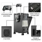 Hardsided front compartment: Designed for quick access to tablets and laptops up to 16".you can also store a book, headphones, travel documents, and other essentials in the numerous small compartments for convenient access before or during your flight. Smooth and Silent Spinner Wheels: 24 inch checked hard shell luggage with spinner wheels, which features four whisper-quiet wheels that can spin 360 degrees, are easy to maneuver whether you're running to your airport gate or making your way through a new city. Three TSA locks: An aluminum frame, aluminum corners, and three TSA-approved clasp combination locks replace zippers, with a different combination code set on each TSA-approved clasp lock for unmatched security and sleekness.The keyhole is designed to facilitate customs inspectors to quickly open the suitcase with a master key. The suitcase does not come with a key. 24In Aluminum Luggage:The zipperless trunk luggage from features aerospace-grade polycarbonate for the shell. Due to its flexibility, this material can absorb impact while retaining its shape.Elevated touches include an ergonomic telescopic handle, a TSA-approved lock, and an interior made with durable, waterproof fabric. Multifunctional Suitcase: The luggage also features a built-in USB port and Type C port and an internal power bank compartment for easy charging on the go (Power bank not included).Hidden folding cup holder on the back of the suitcase, aluminum alloy handle design mobile phone holder, and hook on the side of the suitcase, allowing you to easily enjoy every trip.