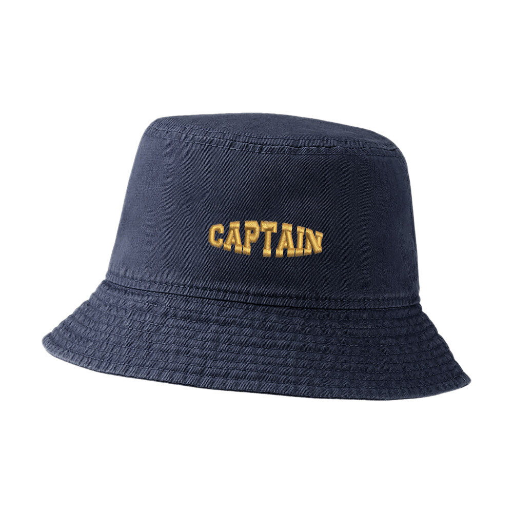 Unisex Captain Embroidered Washed Cotton Bucket Hat for Men and Women