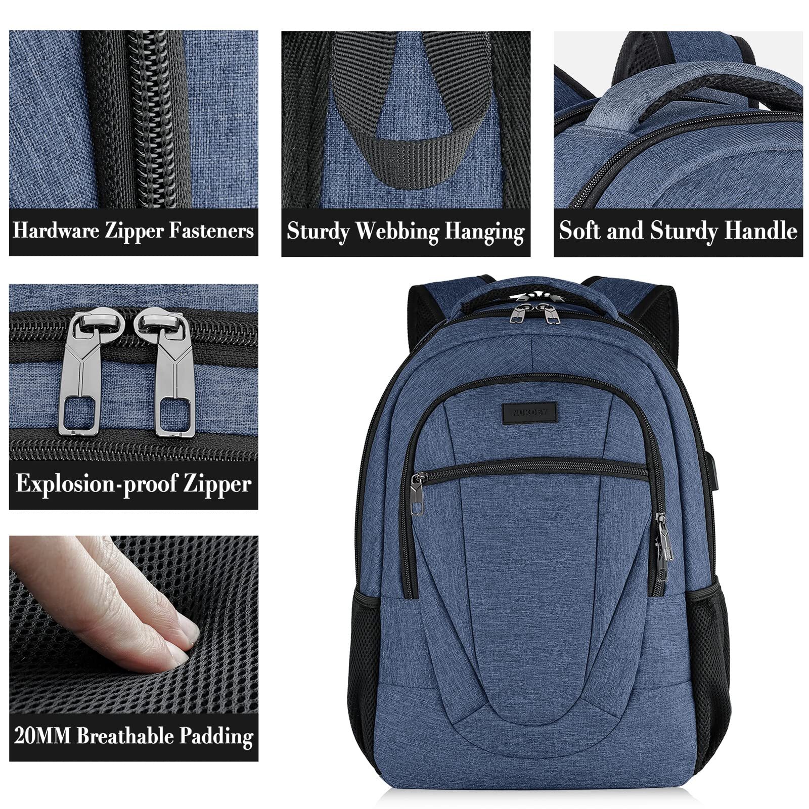 BACKPACKS ★STORAGE SPACE&POCKETS: The main pocket of school backpack is equipped with a separate laptop soft compartment hold 15.6-inch laptops and 15-inch, 14-inch and 13-inch Macbooks/notebooks. The soft sponge design will protect your laptop. Outside the compartment, a more spacious packing compartment roomy hold an iPad, mouse, charger, binder, books, clothes, etc. Mesh pockets are located on the sides of water bottles and compact umbrellas to keep your belongings organized and easier to find ★ STURDY MATERIAL&SOLID: Made of Waterproof and Sturdy Polyester Fabric with metal zippers. Ensure a secure & long-lasting usage everyday & weekend. Serve you well as professional office work backpack, slim USB charging backpack, perfect as Laptop Backpack, Travel Backpack, College Bookbags School Teen Boys Backpack, mochilas para hombres. Premium gift for the family, friends, co-workers, Birthday, Christmas for Middle School, High School, College, Bachelor, Graduate, Men, Adult Traveling ★USB PORT &ANTI THEFT DESIGN:With built in USB charger outside and built in charging cable inside,this USB backpack offers you a more convenient way to charge your phone while walking. A luggage strap allows backpack fit on luggage/suitcase, slide over the luggage upright handle tube for easier carrying. With a hidden anti theft pocket on the back protect your valuable items from thieves, please be assured that the use of ★ COMFY&STURDY: Comfortable airflow back design with thick but soft multi-panel ventilated padding, gives you maximum back support. Breathable and adjustable shoulder straps relieve the stress of shoulder. Foam padded top handle for a long time carry on. ★Age: suitable over 3 years old