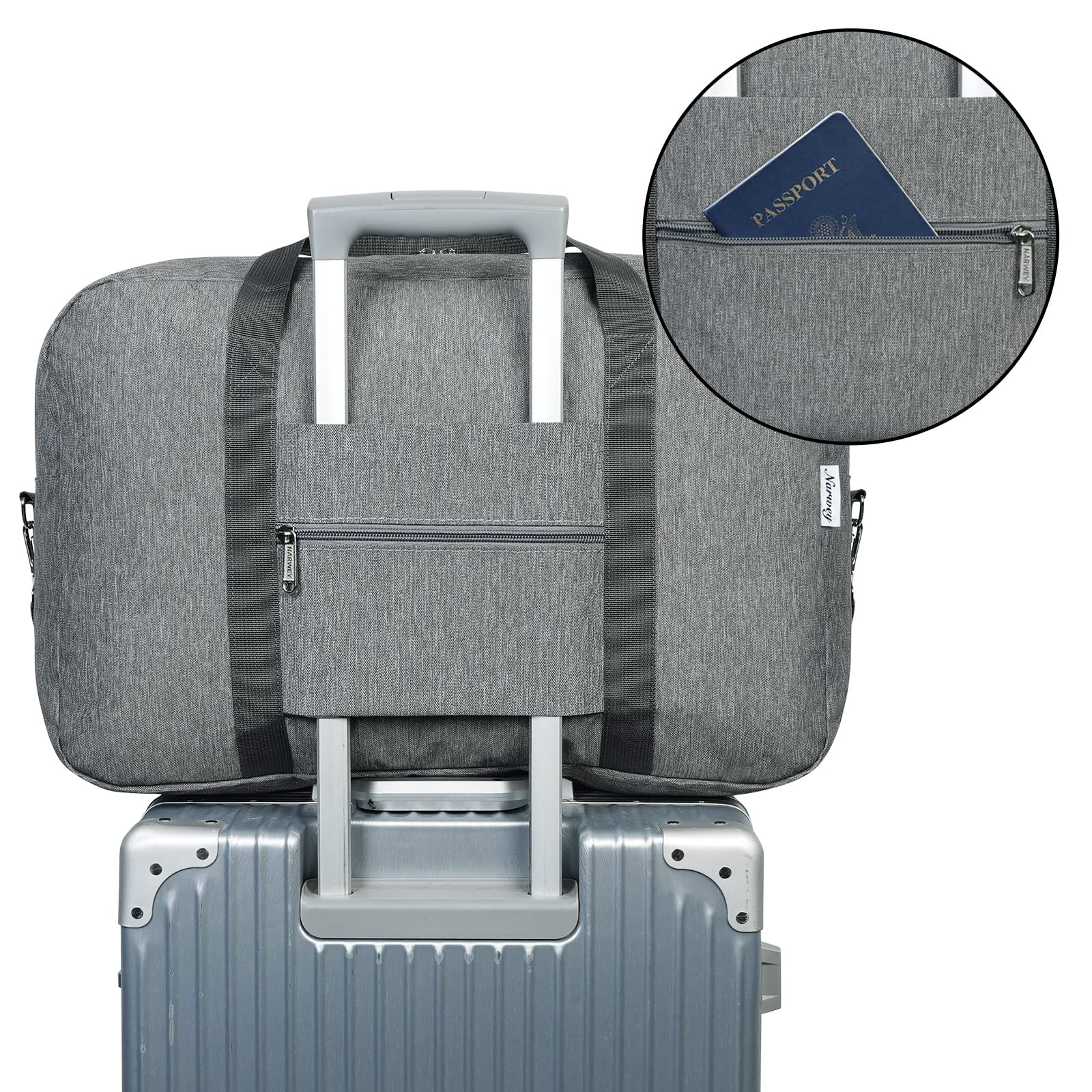 Fit Carry-on Bag Size - Bag size 20 x 13.3 x 8.7 inch fits carry-on item size 22 x 14 x 9 inch of United Airlines, Southwest Airlines, Alaska Airlines, which could be fitted into the overhead bin Easy Carrying - Its exterior pocket offers quick access to items like tickets, passport and more. The pouch as a strap allows the duffel to fit nicely over the handle of common suitcase 18 20 24 26 28 32 inch Extra Padded Shoulder Strap - It comes with an adjustable and detachable padded shoulder strap, which give you comfortable feeling when carrying on shoulder Reliable Quality - Made of sturdy and durable fabric which is tear-resistant, sturdy and adjustable straps, smooth zippers. no need to worry any ripping or break during trips Versatile - Large capacity 40L to easily hold all your gym or travel items, ideal for garment bag, hospital bag, sports, gym use, yoga, travel, weekend shopping, overnight, camping and picnic