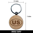 United States US Engraved Wood Round Keychain Tag Charm