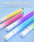 Return Policy Fast Delivery Trusted seller Stylus Pens for Touch Screens, Universal 2 in 1 Stylus Pen for iPad Compatible with iPhone, iPad, Android, Microsoft Tablets, Phones, Surface,[5 Pack]-Blue,Green,Pink,Purple,Yellow Product Description 【UNIVERSAL STYLUS】Our stylus is widely compatible with all touchscreens, including smartphones, Android tablets, touchscreen laptops/computers. It also works with Apple iPad, iPhone, iPad Pro, iPad Mini, iPad Air, Android, Surface, Chromebook and other capacitive touch screen devices. 【2-IN-1 DESIGN】The stylus has different tips on each end. One end is a disc tip that is more precise and sensitive for note taking and drawing. The other end is a durable silicone tip for browsing or scrolling through web pages, effectively protecting the screen from fingerprints or smudges. 【LIGHT WEIGHT AND PORTABLE】The body of the stylus is made of lightweight plastic and weighs only 0.23 ounces per pen. The stylus pen is 4.9 inches in length, making it easy to hold while still being portable. 【BANG FOR THE BUCK】These 5-packs of colored styluses may not be a decent choice for pros working in graphic design, but it's absolutely of great value for adults or kids to be able to write and do more detail work with than just a finger. 【5 GRADIENT COLORS】The 5 different bright colors of blue, pink, green, yellow and purple are more popular with children. The rich number of stylus allows you to use them in multiple scenarios, and you can always have replacements without worrying about losing them. Shipping Returns Payment Shipping Shipping is FREE to all addresses other than APO/PO boxes in the lower 48 states. All our stock ships from US-based warehouses. Shipped via USPS or UPS (depending on location and package weight) Unless stated otherwise, all orders will ship within 24-72 hours of your payment being processed. Check our feedback to see the great reviews of FAST shipping we offer. Returns Seller does not accept returns Payment We currently accept payment via eBay managed payments only. Once payment is cleared, we will dispatch your shipment within 1-3 business days. Please refer to the "Shipping" tab for more information regarding shipping speed to your destination.